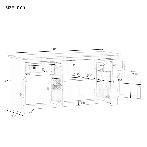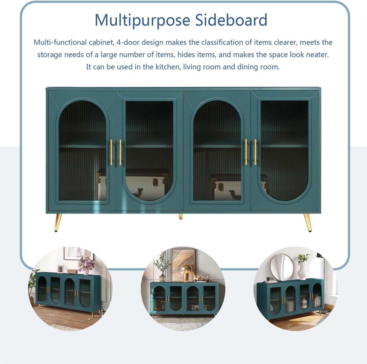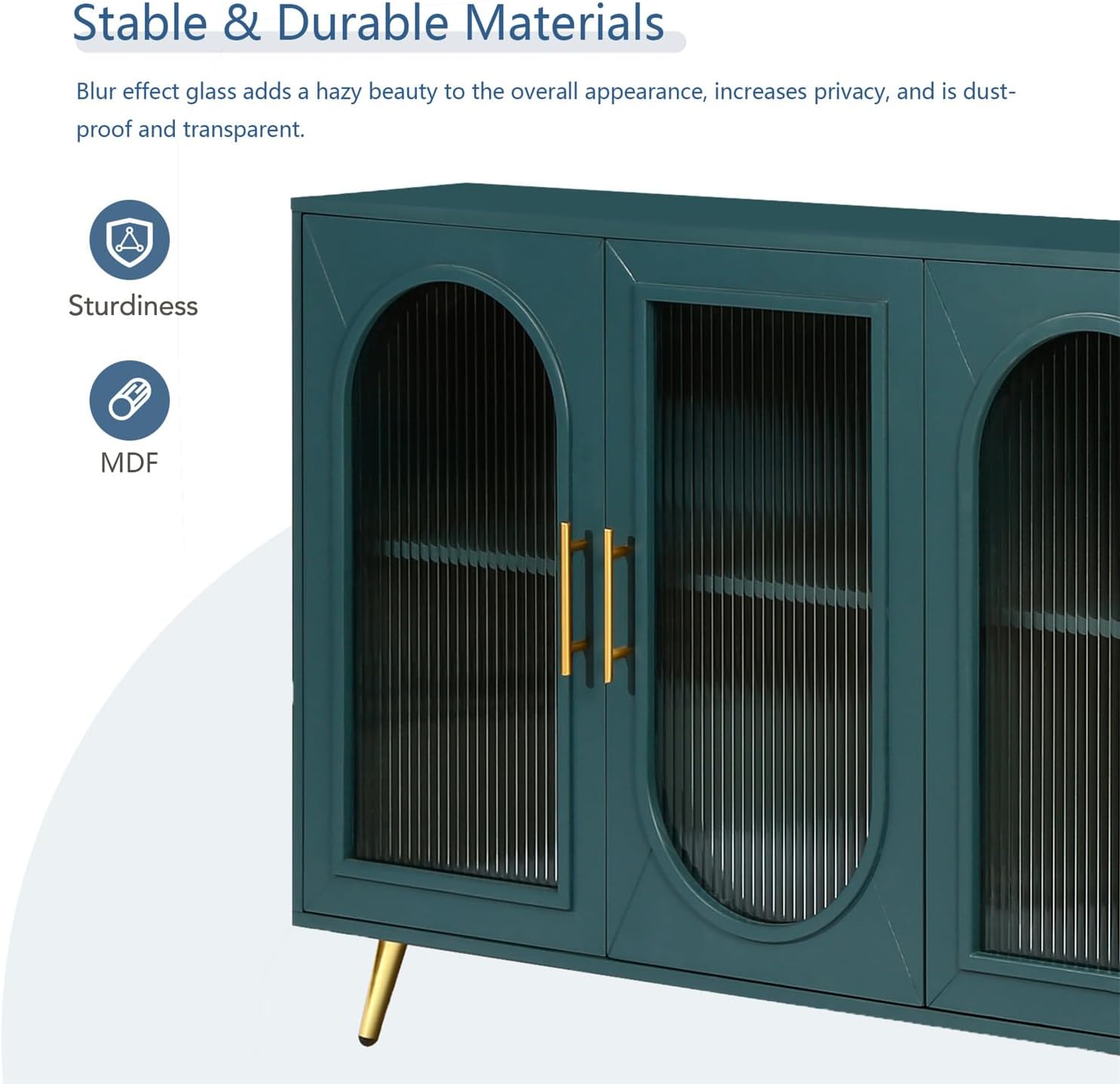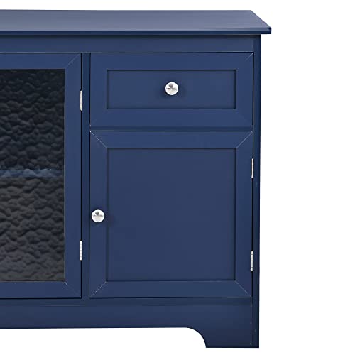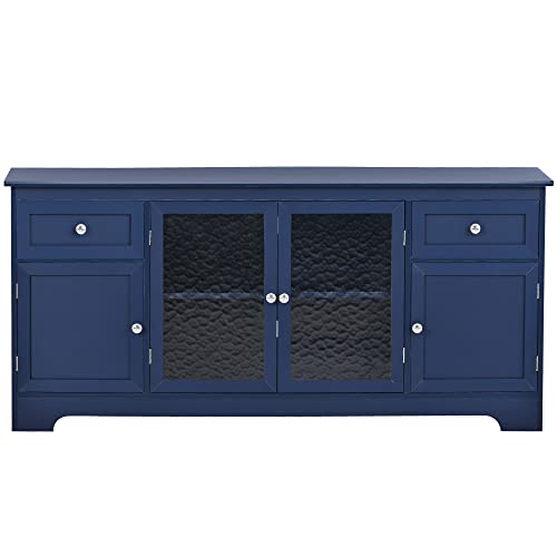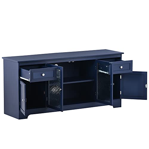 ZeHuoGe Wood TV Stand with Storage Cabinet,Sideboard Buffet Cabinet,Kitchen Storage Cabinet with 4 Doors,Media TV Console for Living Room Bedroom (Navy Blue)