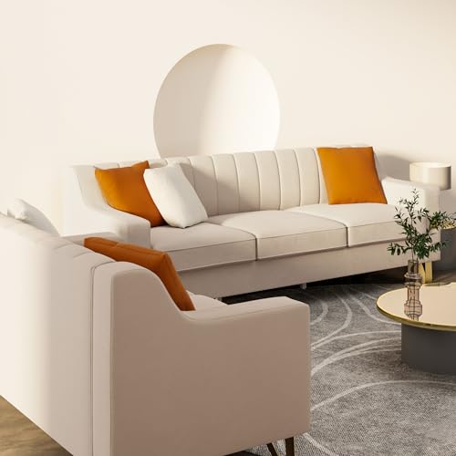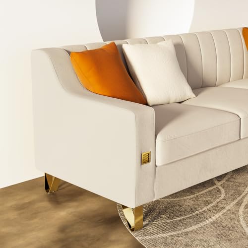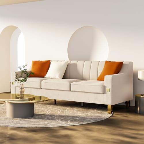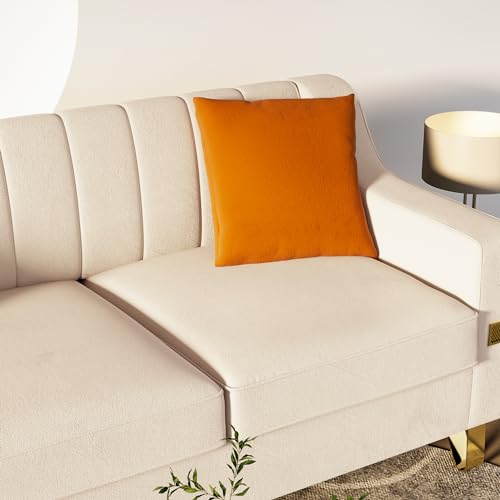 3 Seater Pink Velvet Couch Upholstered 82" Couch for Living Room Mid Century Sofa with Metal Gold Legs Chesterfield Sofa with 3 Pillows (Black, Loveseat)