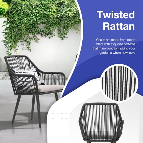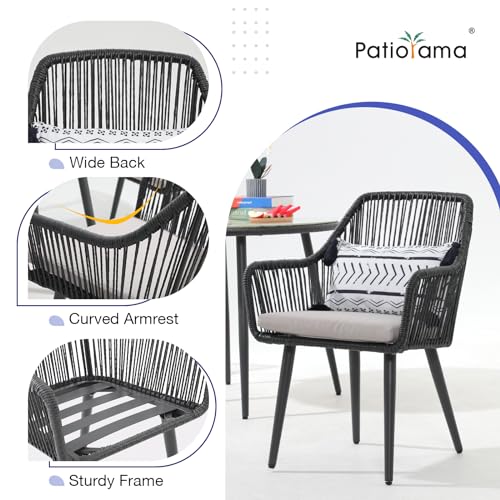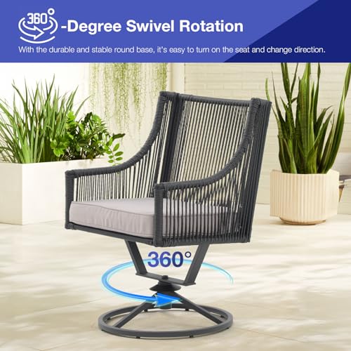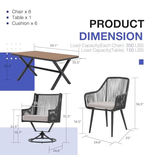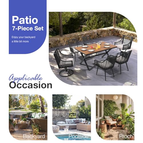 Patiorama 7-Piece Outdoor Dining Set, Patio Wicker Dining Table Chair Set for 6, Patio Dining Furniture Set, 4 Dining Chairs, 2 Swivel Dining Chairs & 1 Rectangular Table for Lawn, Garden, Pool, Black