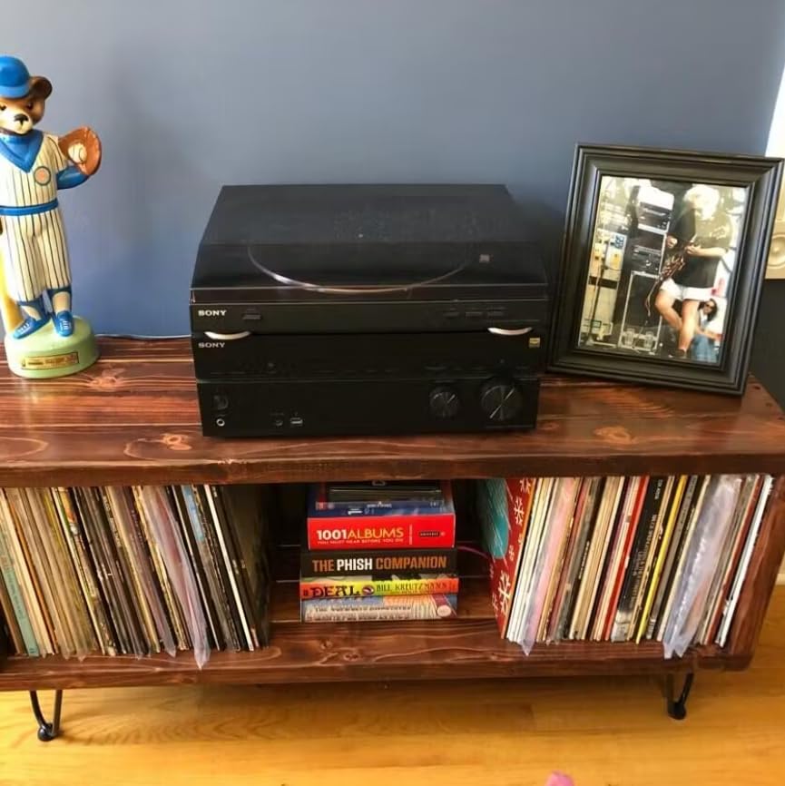 Vinyl Record Storage Furniture | Record Player Stand | Media Console | Tv Stand | Record LP Storage | Turntable Stand (65, Honey)