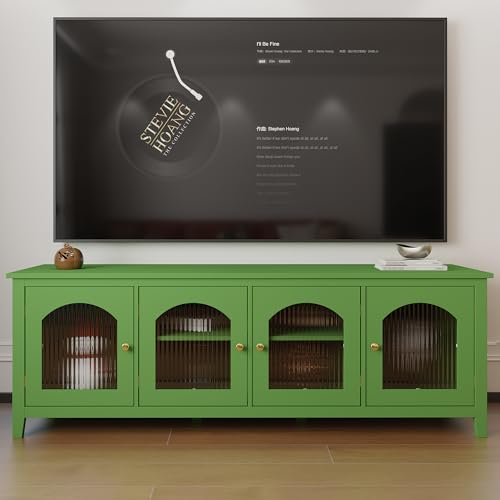 Farmhouse TV Stand for TV up to 65in, Entertainment Center with 4 Doors Adjustable Panels Open Style Cabinet, Sideboard for Living Room (Navy+W@)