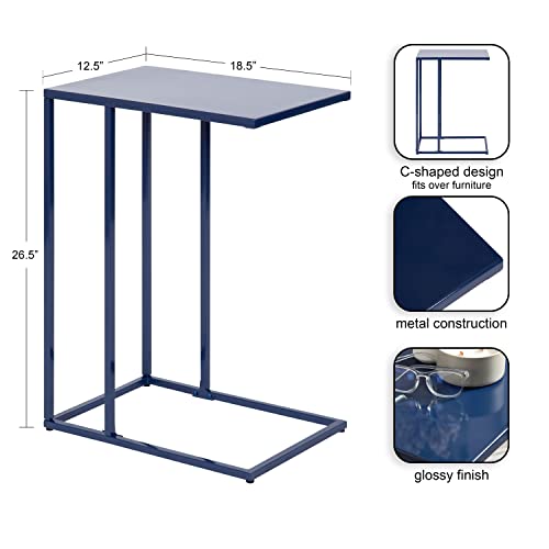Kate and Laurel Lockhardt Modern Decorative C Side Table as a TV Tray, Bedroom Accent Piece, or a Versatile Laptop Stand, 19x13x27, Navy Blue