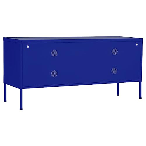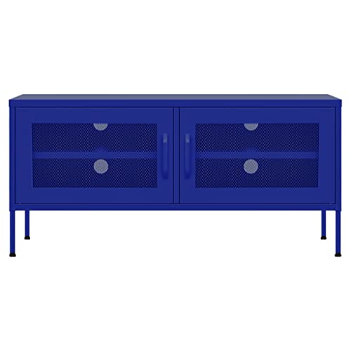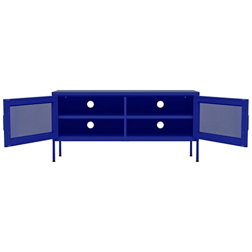 TV Stand Navy Blue 41.3"x13.8"x19.7" Steel,Sturdy TV Stand with Mesh Doors for Storage and Cable Management TV & Media Furniture