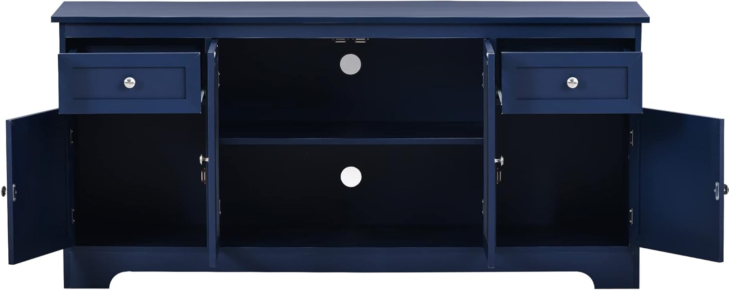 TV Stand for Televisions up to 68 Inchs, Media Console Table with 2 Doors, 2 Drawers and Open Style Cabinet for Living Room, Navy