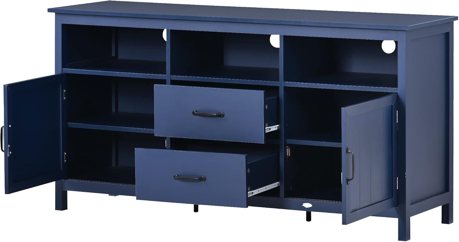 Modern Entertainment Center TV Media Console Cabinet, Farmhouse TV Stand with Open Shelves, Doors & Drawers, TV Console Cabinet Furniture for Living Room, Navy 57" x 18.1" x 30"