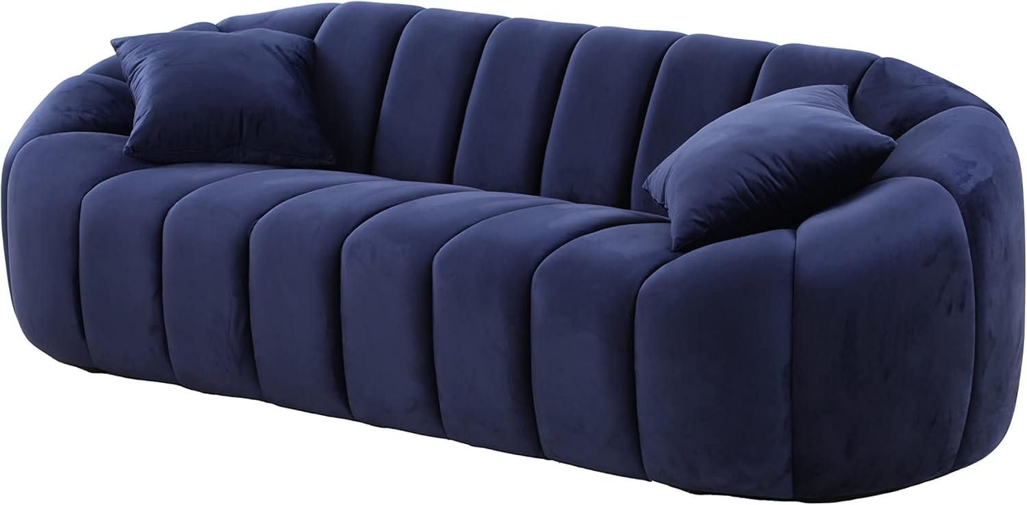 88'' Modern Sofa 3 Seater Couch with Deep Channel Tufting Stunning Navy Velvet Sofa for for Living Room,Bedroom