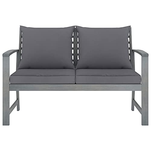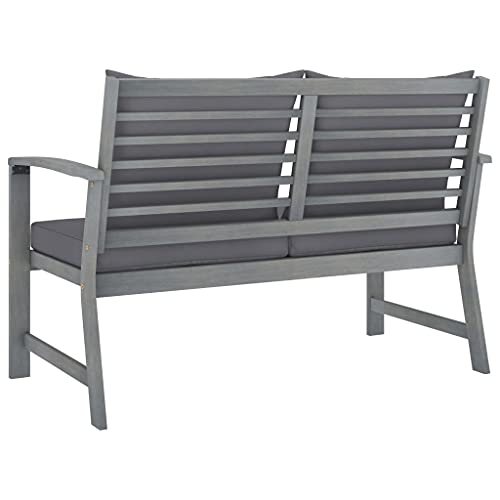 Patio Bench 47.2" with Dark Gray Cushion Solid Acacia Wood,Rustic Patio Bench with Cushions for Outdoor Garden, Solid Acacia Wood Gray Bench with Backrest and Weather Resistance Patio Seating Furnitur