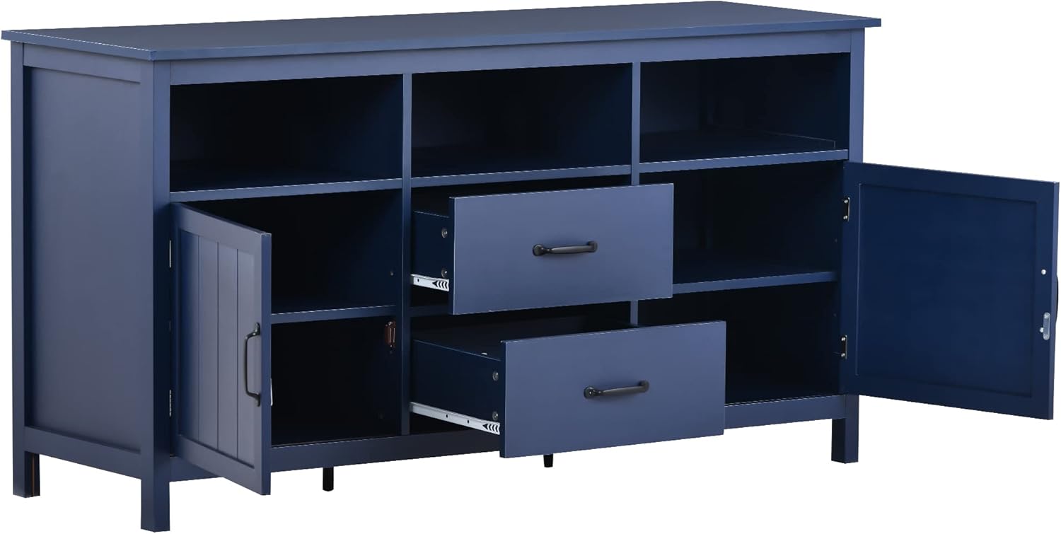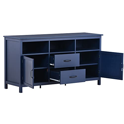 U-Can TV Stand for TV up to 68 in with 2 Doors and 2 Drawers Open Style Cabinet, Sideboard for Living room, Navy