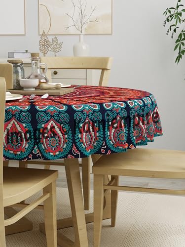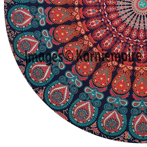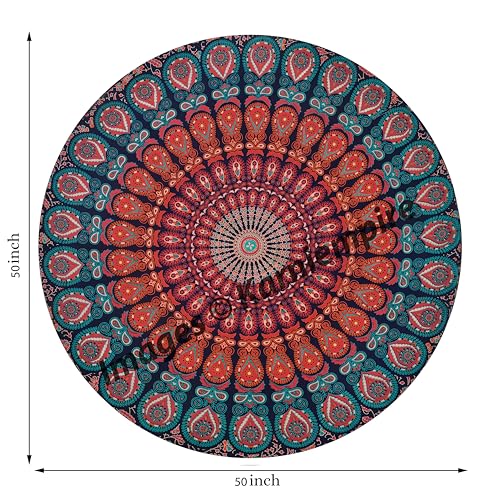 Indian Mandala Round Bohemian Beach Throw Boho Gypsy Cotton Tablecloth Rug Yoga Mat Table Cover Tabletop for Home Dining Kitchen Wedding Parties Holiday Picnic 50 Inches (Red & Orange)
