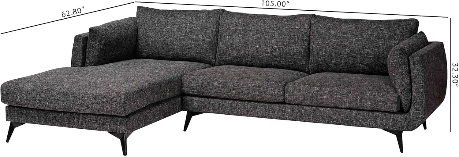 Baxton Studio Cantu Twill Fabric Sectional Sofa, 3-Seater, Dark Gravel Grey