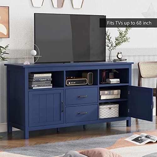 Amposei Farmhouse Modern TV Stand for 68-inch TVs Media Entertainment Center Console Storage Cabinet with Drawers & Display Shelves for Living Room Bedroom, 57 Inch, Navy
