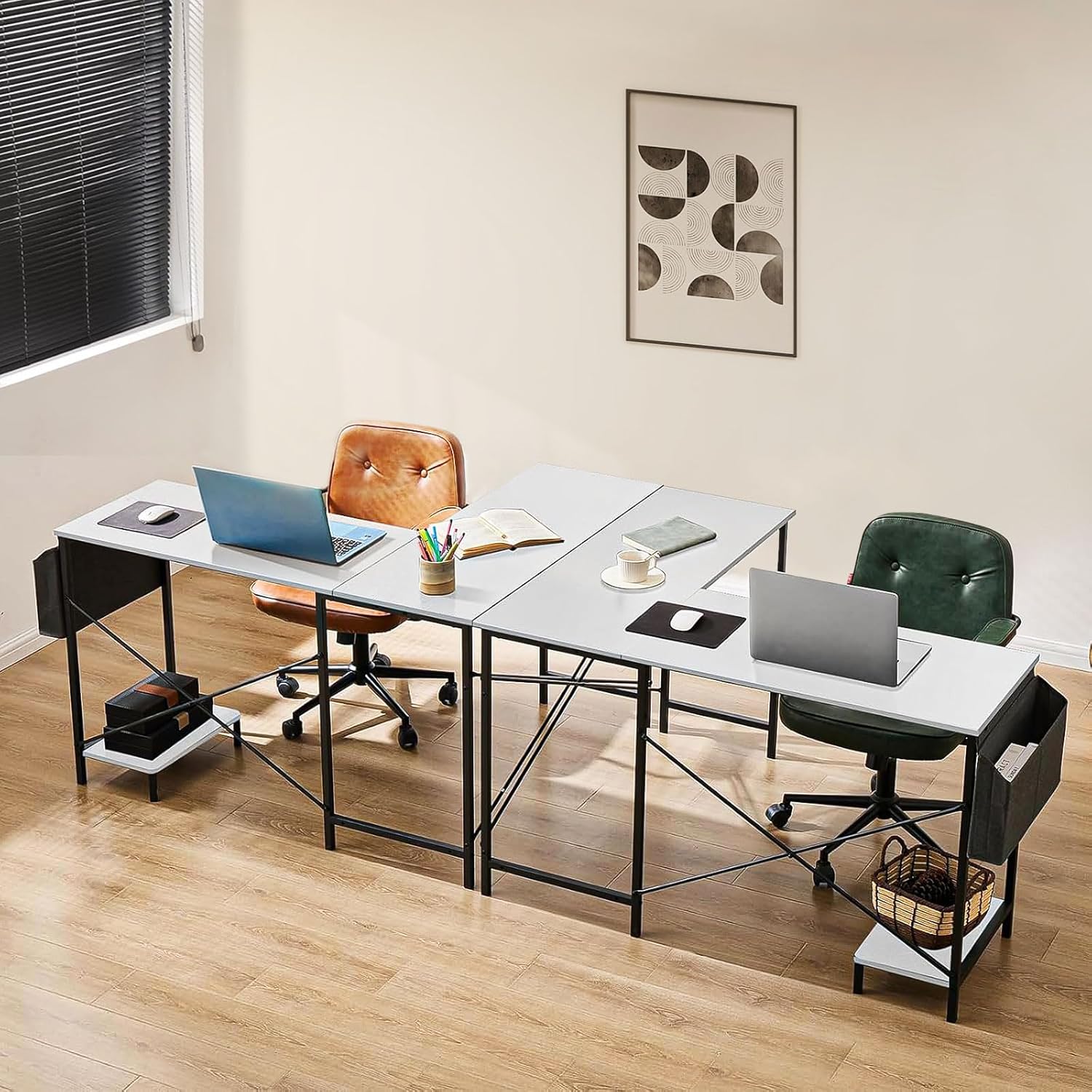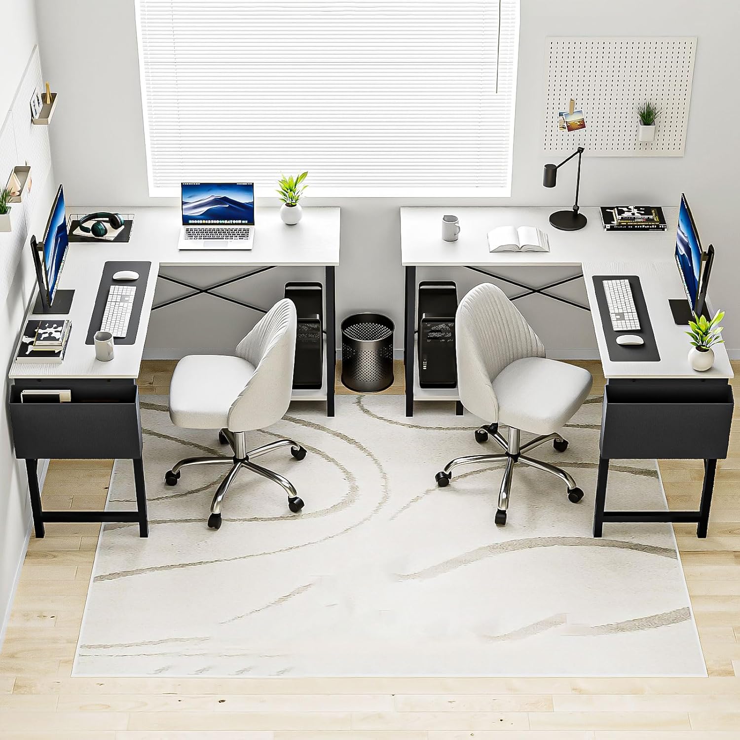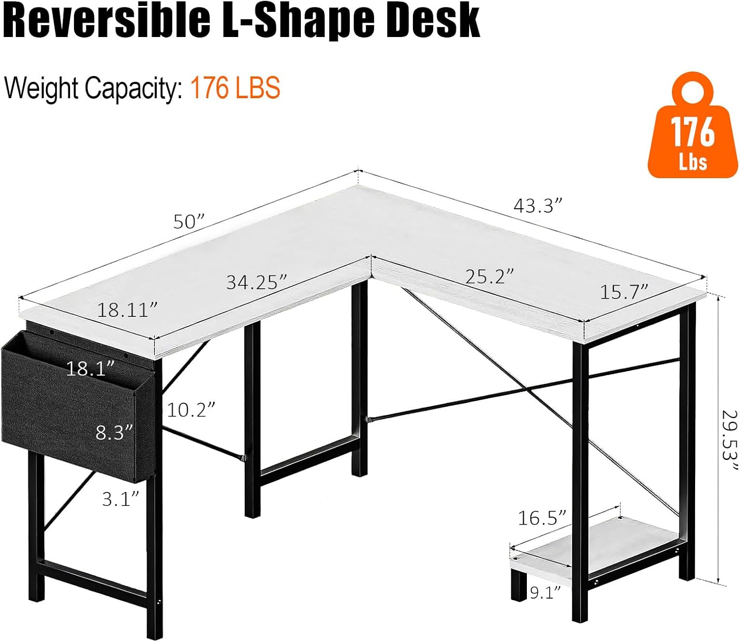 L Shaped Computer Gaming Desk, 50 Inch Corner PC Wooden Table with CPU Stand Side Bag Reversible, Small Space Study Writing Desk for Home Office, Bedroom, White
