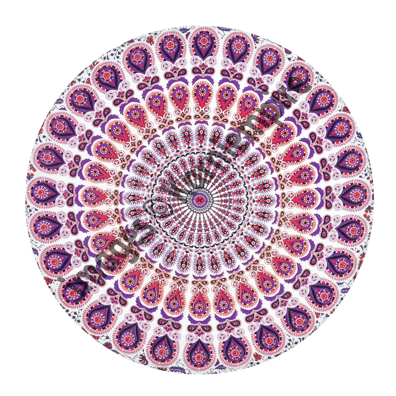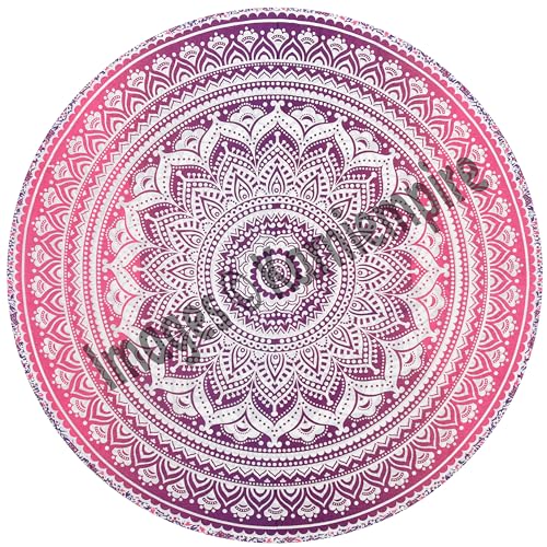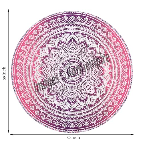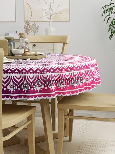 Indian Mandala Round Tablecloth 50 Inch Purple Bohemian Table Cover Cotton Throw Tabletop for Picnic Party Dining Room Home Decor Restaurantt Picnic Indoor Outdoor Dining