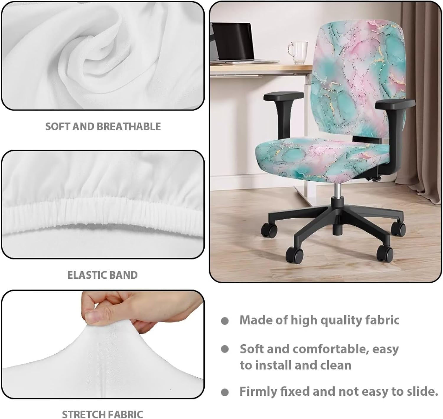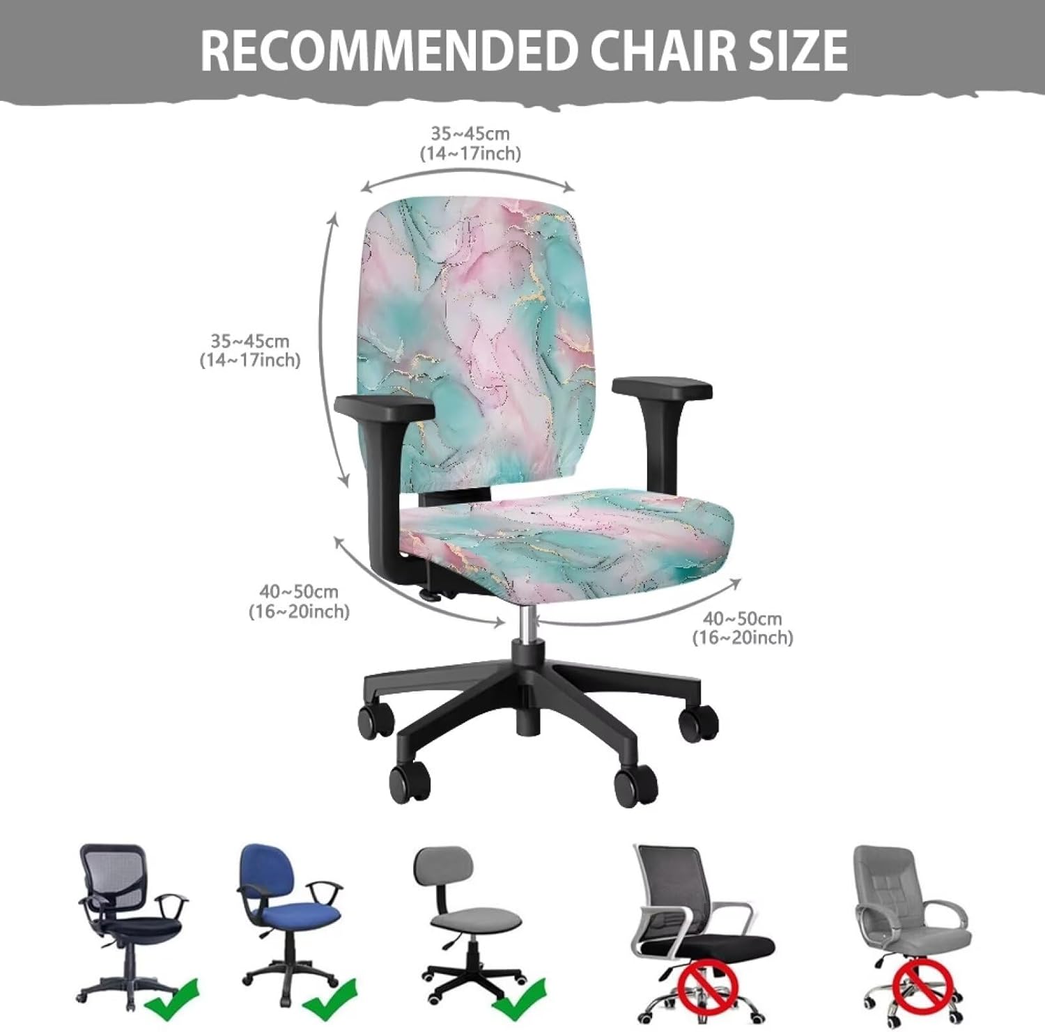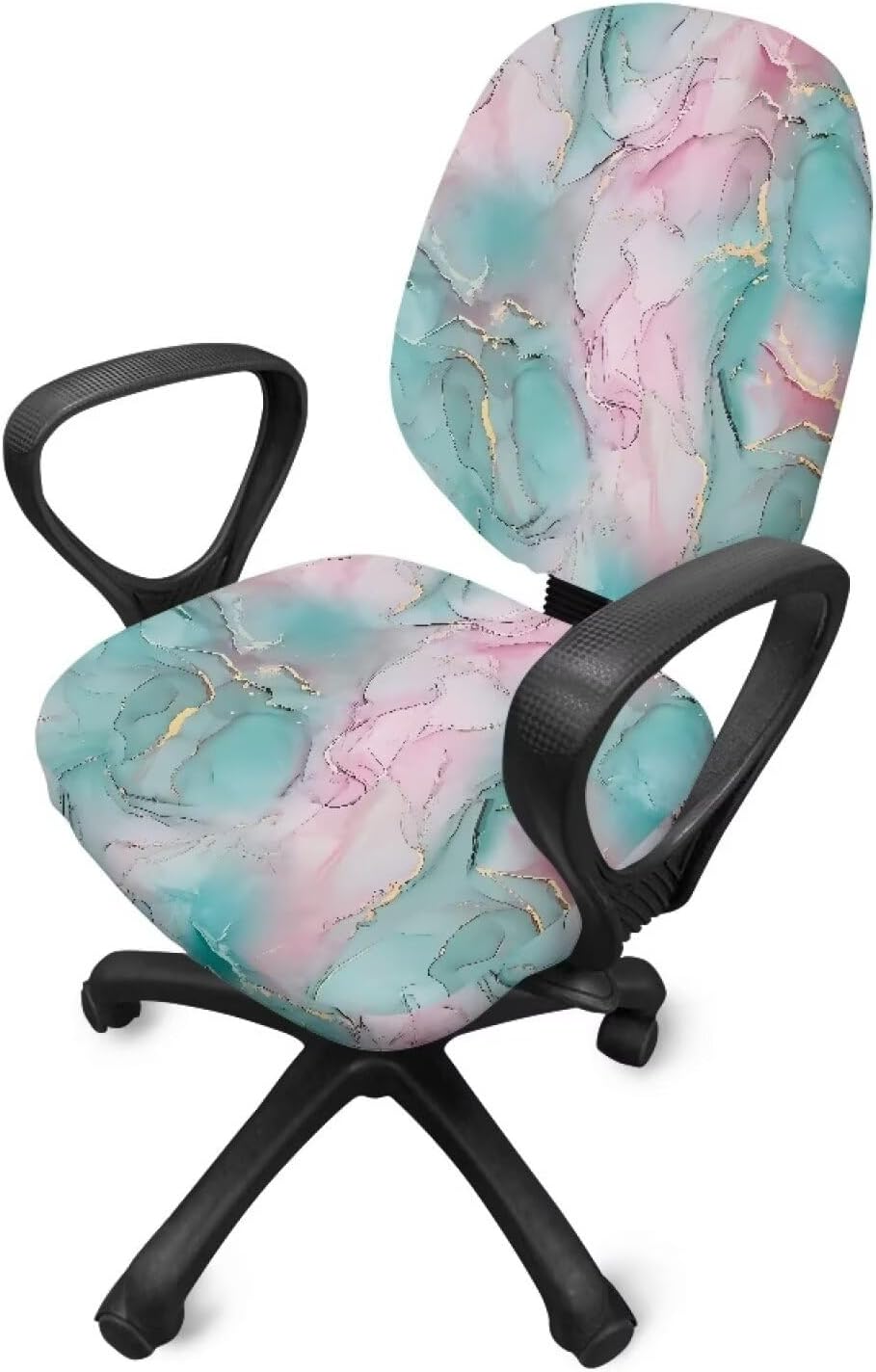 Pink Gold Turquoise Marble Office Chair Cover Desk Chair Cover no Arms Computer Chair Covers Stretchable 2 Piece Fabric Gaming Chair Cover Universal Chair Covers Polyester Rolling Chair Cover