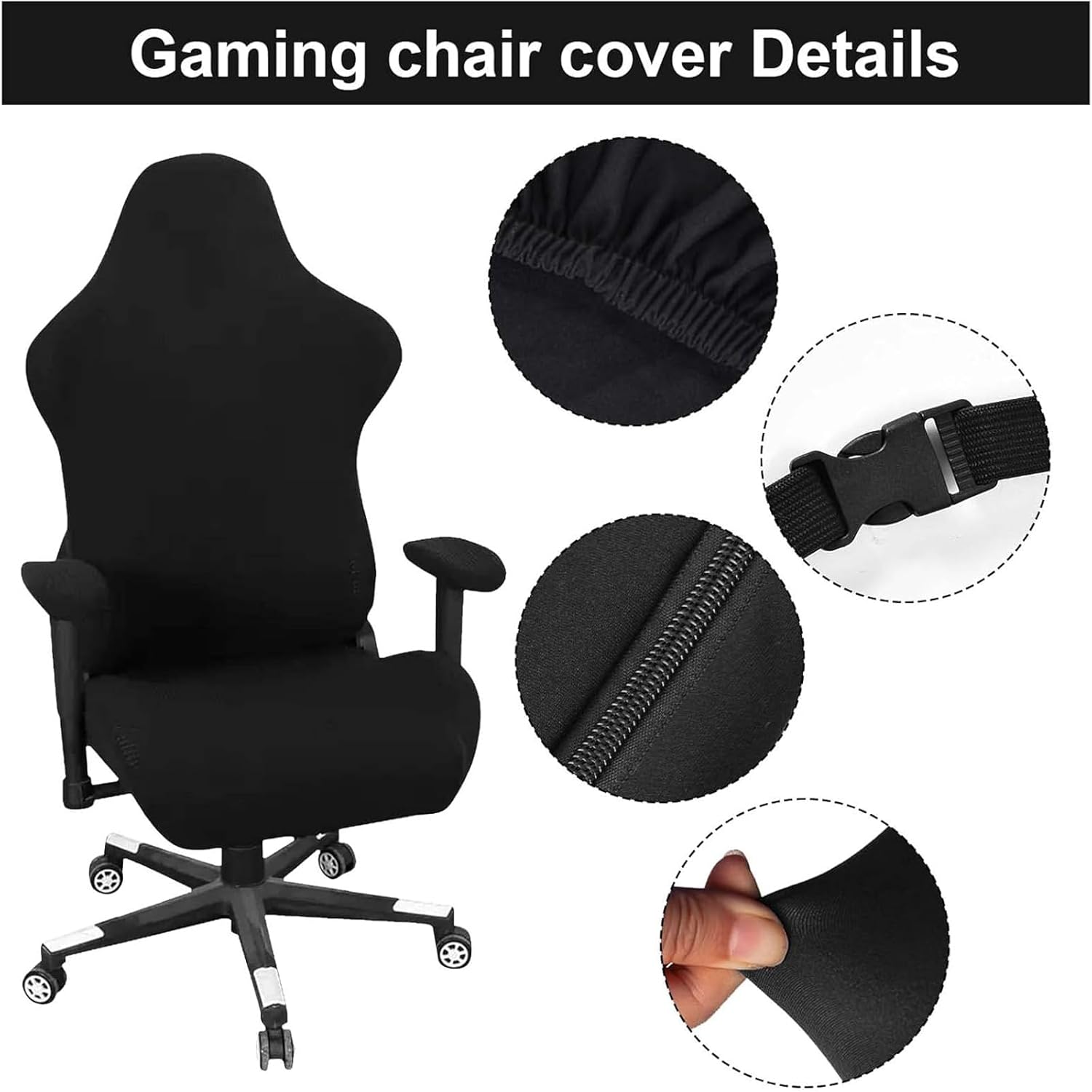 Gaming Chair Cover, Ergonomic Office Computer Game Chair Slipcovers, Stretchy Polyester Covers, 4pc/Set with Armrest Covers/Back Covers/Seat Cover for Reclining Racing Gaming Chair Black