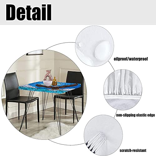 Marble Square Table Cove, Marble Style Texture, Elastic Edge, Can Wipe Indoor/Outdoor Dining Table Cover, Fit for 47"x47" Square Table
