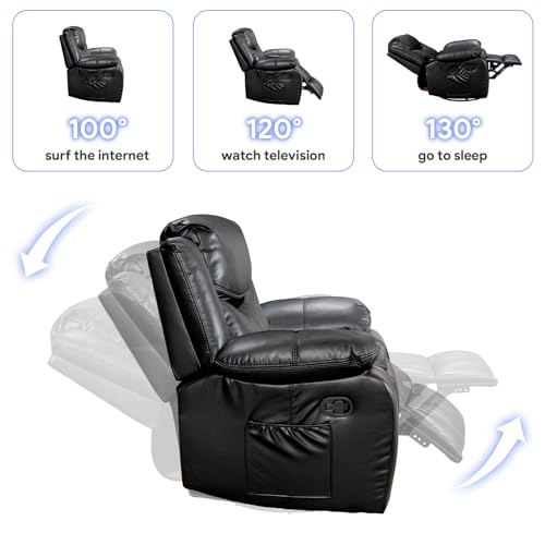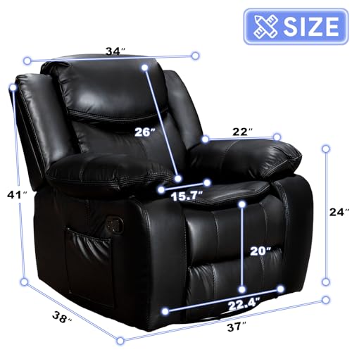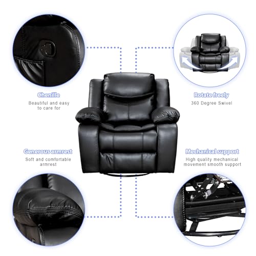 KISSLIVE Rocking and Swivel Recliner Chair, 40" Width Recliner Sofa Chair, 360 Degree Swivel Rocking Living Room Chair Support Up to 500 lbs Weight Manual Recliner Chair (Air Leather, Gray)