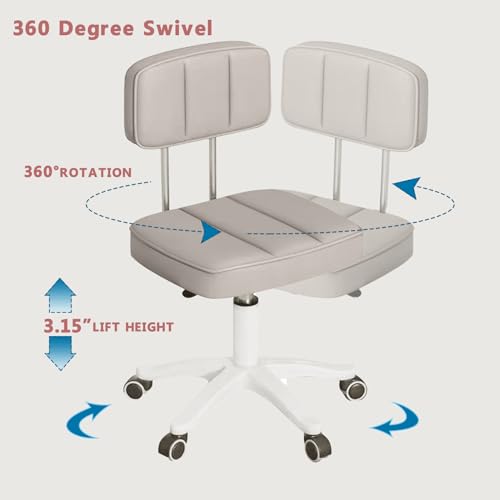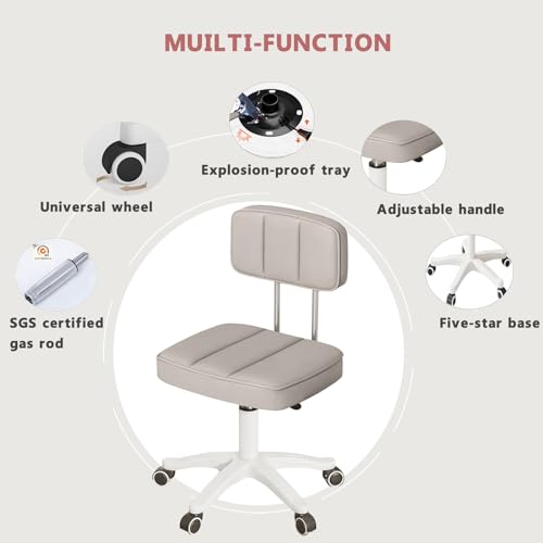 Small Office Desk Chair Armless Rolling Drafting Swivel Chair with Wheel Makeup Task Vanity Chair with Low Back Height Adjustable for Teenagers,Students, Study Room, Bedroom