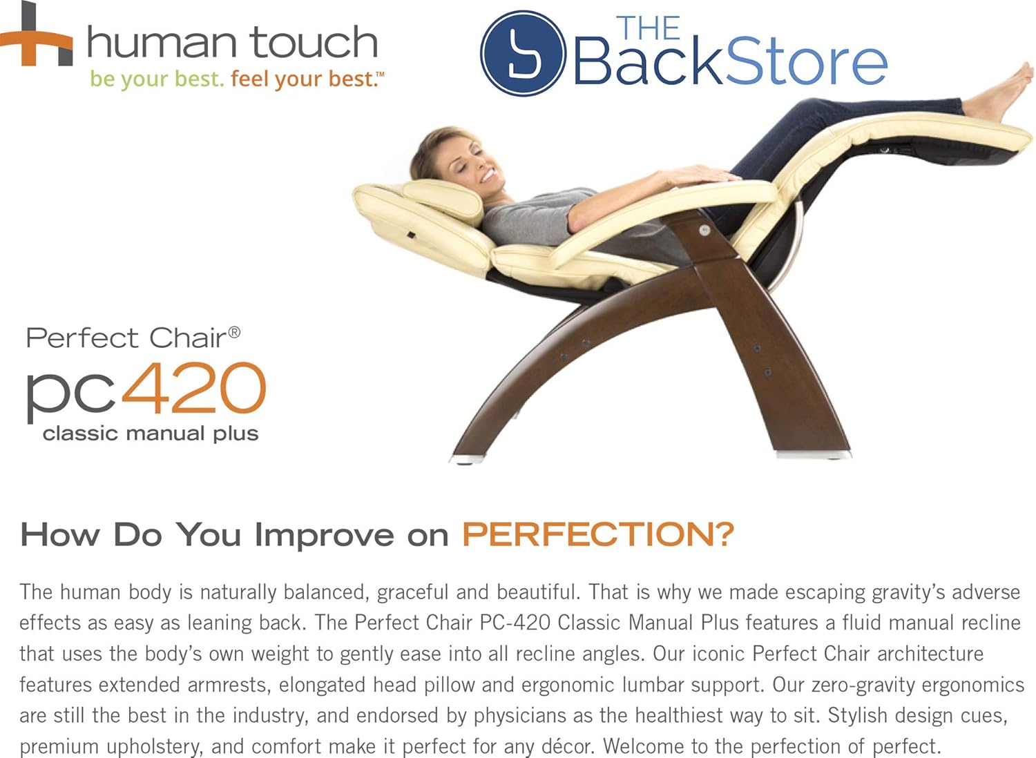 Perfect Chair Human Touch PC-420 Premium Full Grain Leather Hand-Crafted Zero-Gravity Matte Black Manual Recliner, Gray