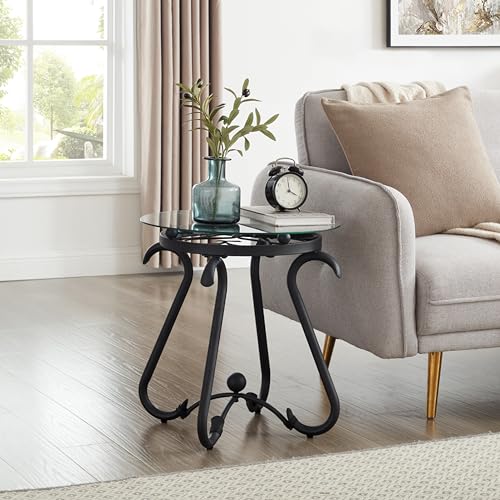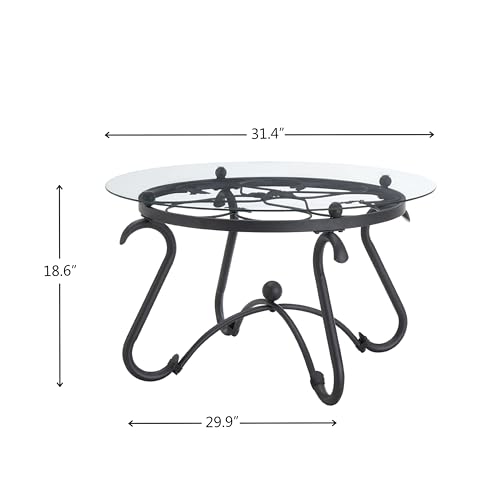 Coffee Table Set of 2 with Tempered Glass Surface & Ironwork, Modern Simple Circular Center Table for Small Space Living Room Home, End Table with Frame Round and Tempered Glass Side Table