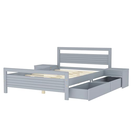 Merax Queen Size Wooden Platform Bed with 2 Storage Drawers and 2 Bedside Tables, Gray
