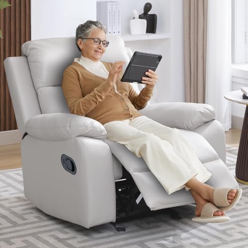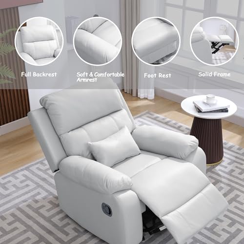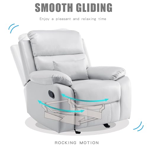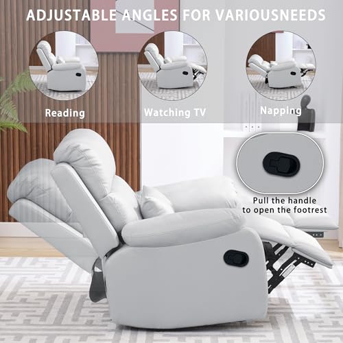 Faux Leather Recliner for Adults,Oversized Rocking Recliner Chair with Manual Recliner Single Sofa for Living Room,Modern Adjustable Ergonomics Lounge Chair with Lumbar Support,Light Gray