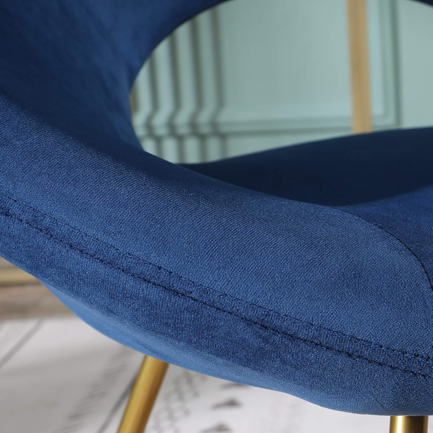 Slatina Blue Silky Velvet Upholstered Accent Chair with Gold Tone Finished Base