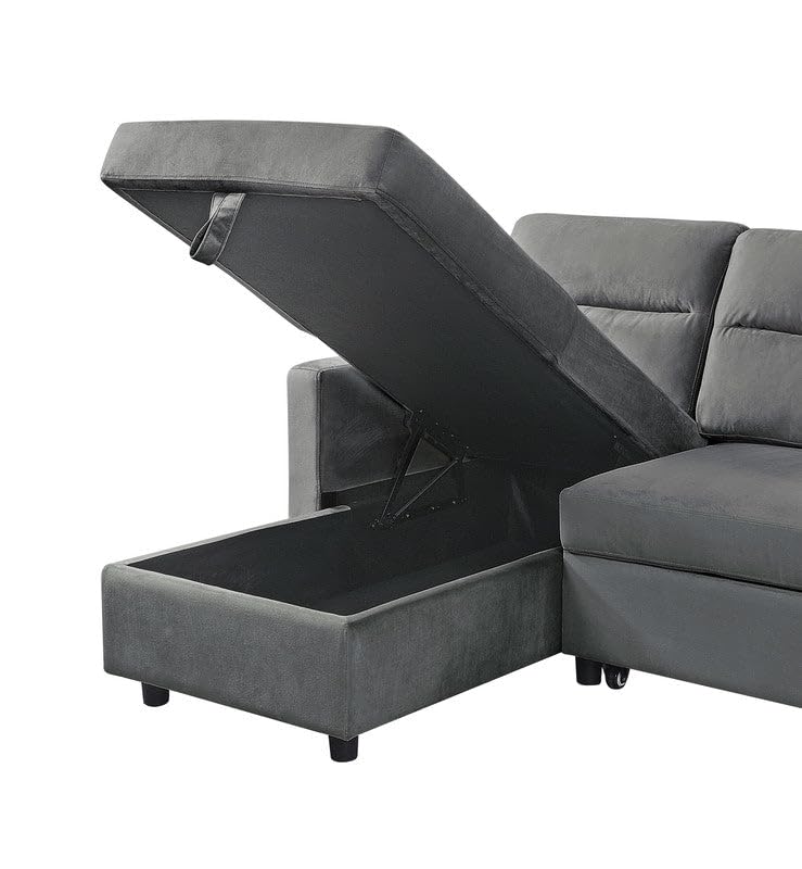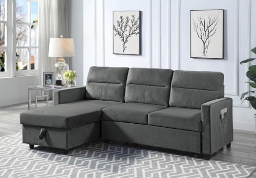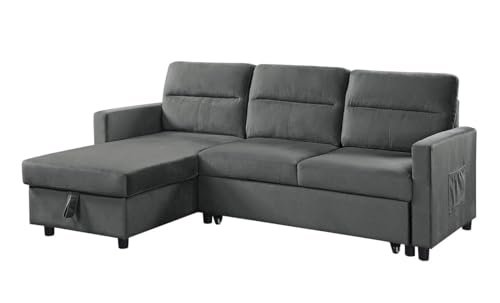 82" Convertible Sofa Sleeper with Storage, L-Shape Sectional Couch W/Chaise and Pull-Out Bed for Living Room, Apartment, Small Spaces, Office, Dorm. Linen, 82inch, Deep Gray