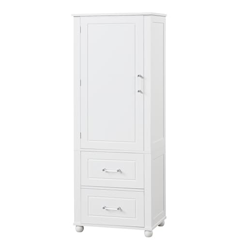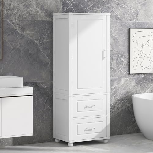 61" Tall Bathroom Cabinet Wooden Floor Cabinet with 2 Drawers, Door and Adjustable Shelf Freestanding Cupboard Storage Cabinet for Bathroom Living Room Kitchen (Grey)