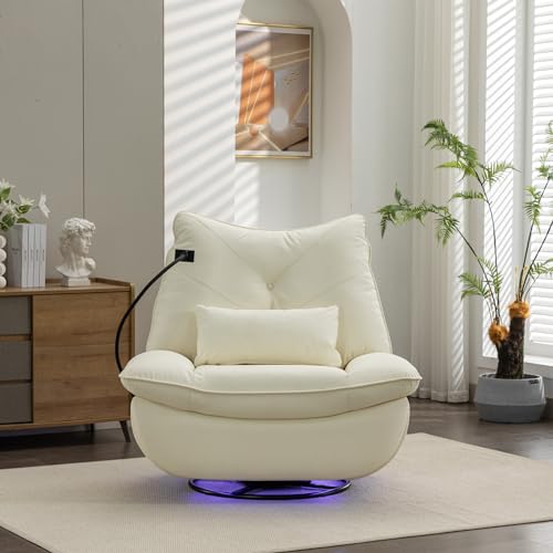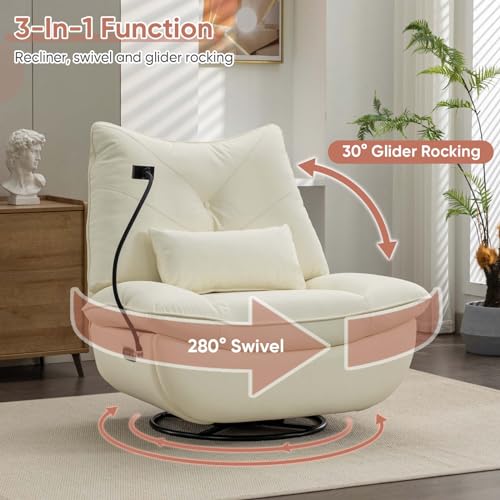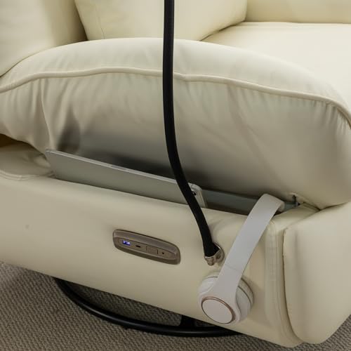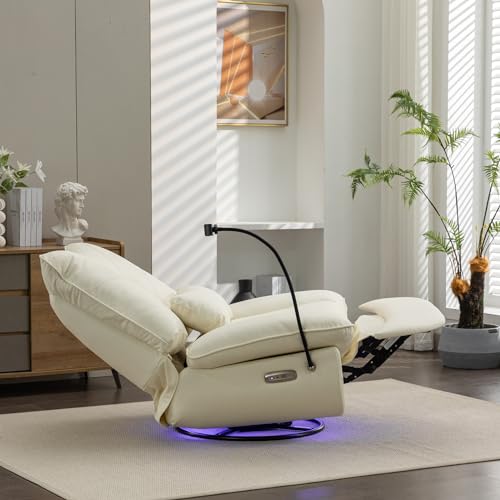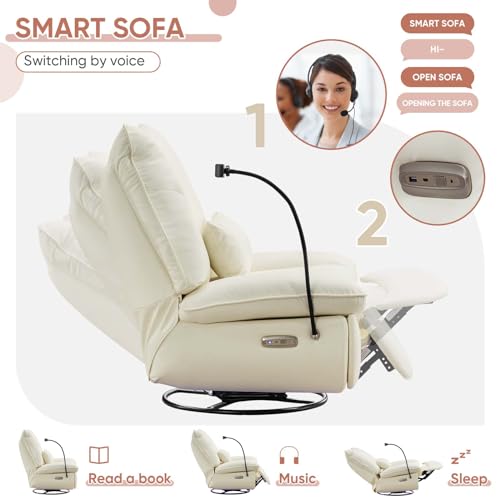 Oversized Electric Recliner with Smart Voice Control, 270° Swivel Recliner Glider Rocker, 43.7'' Extra Wide Power Reclining Chairs Living Room Theater Seating (Dark Gray, Faux Leather)