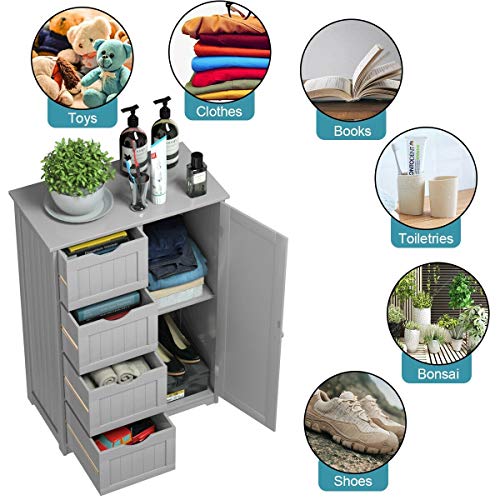 WATERJOY Storage Cabinet,Standing Wooden Cabinet with 4 Drawers Floor Cabinet and 1 Door with 2 Layers Storage Shelf,Bathroom Storage Cabinet,Entryway Cupboard, Toy Organizer Cabinet