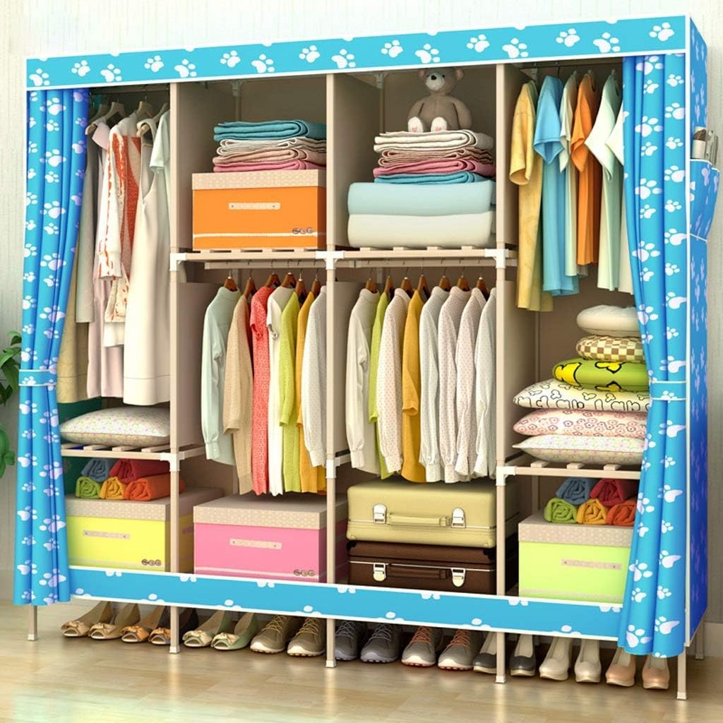 JHDPHd Wooden Bedroom Wardrobes,Canvas Effect Wardrobe - Clothes Storage Cupboard with Shelf Hanging Rail - 165cmX45cmX165cm