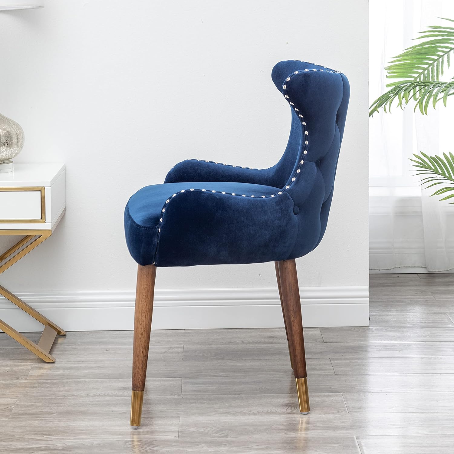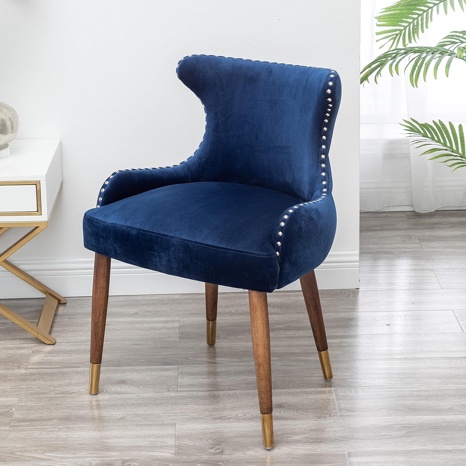 Lindale Contemporary Velvet Upholstered Nailhead Trim Accent Chair, Blue
