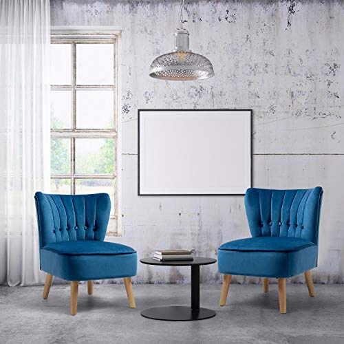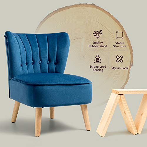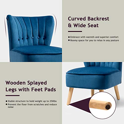 S AFSTAR Armless Accent Chair, Wingback Velvet Sofa Chair with Solid Rubber Wood Legs & Thick Padded Seat, Upholstered Leisure Club Chair for Living Room Guest Room Coffee Shop (1, Blue)