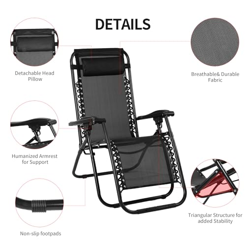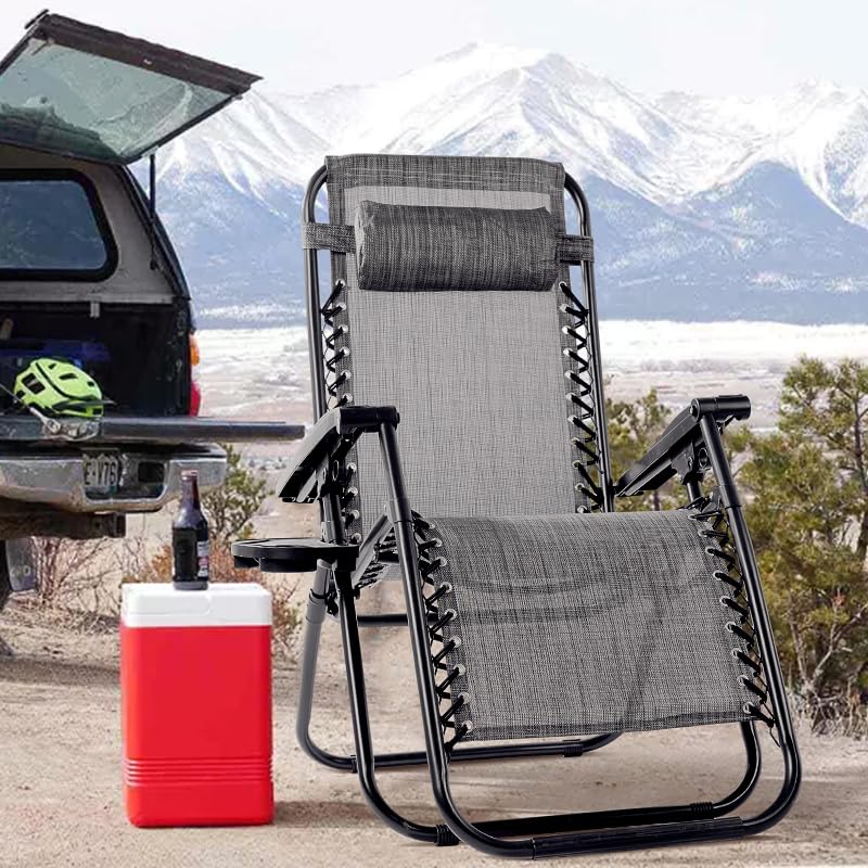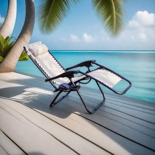 Zero Gravity Folding Reclining Lounge Chair with Pillow,Adjustable Reclining Patio Chairs,Side Table for Home/Office/Camping/Pool Yard with Cup Holder (Beige)