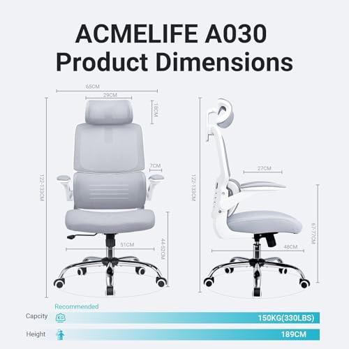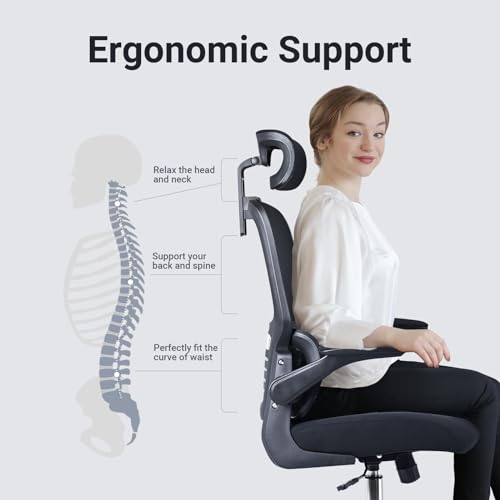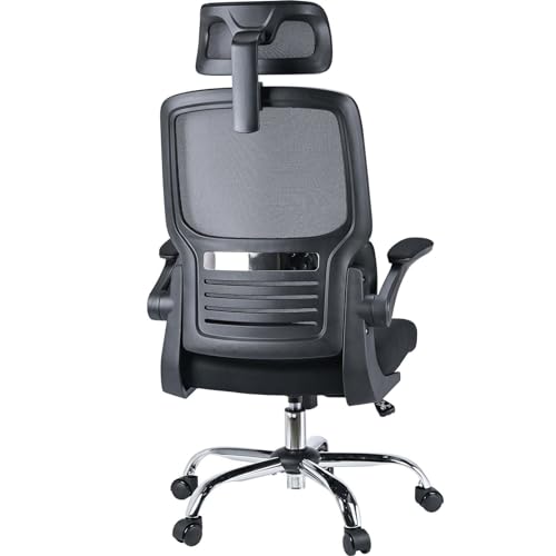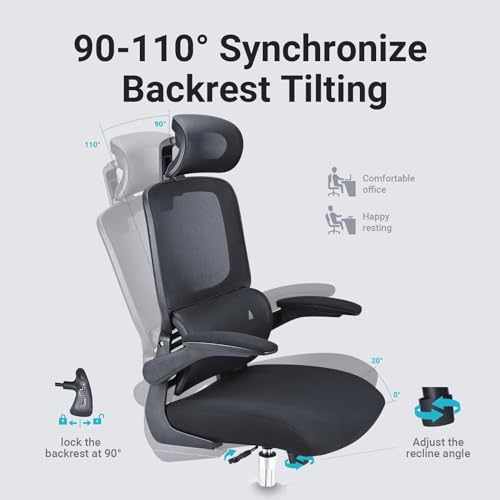 Ergonomic Office Chair Mesh Desk Chair with Adaptive Lumbar Support, Dual Backrest Zones, Computer Chair with Flip-Up Armrests High Back for Studio, Home Truly Widened and Enlarged(Color:Black-white)