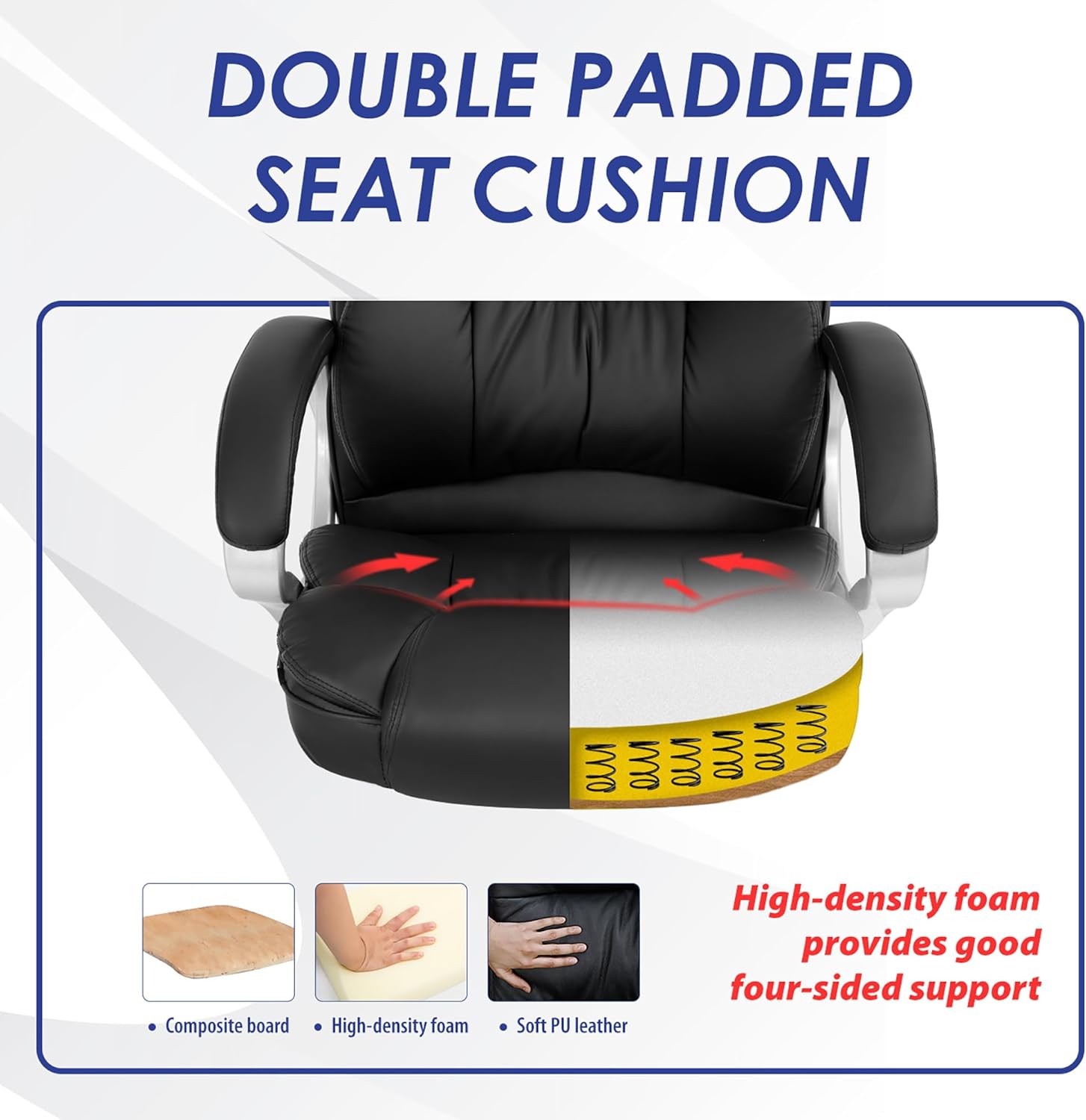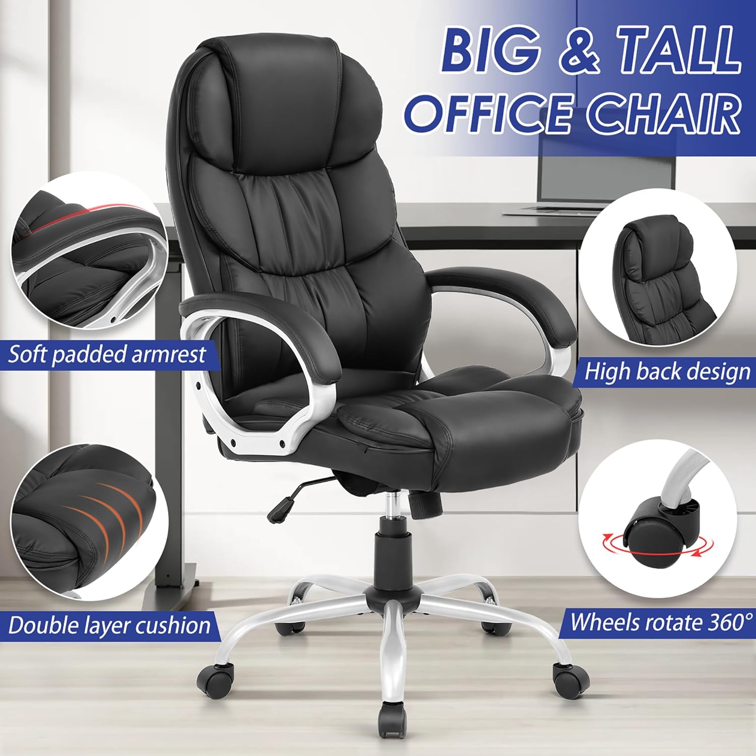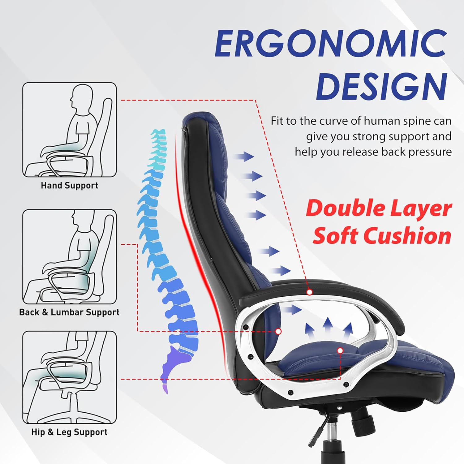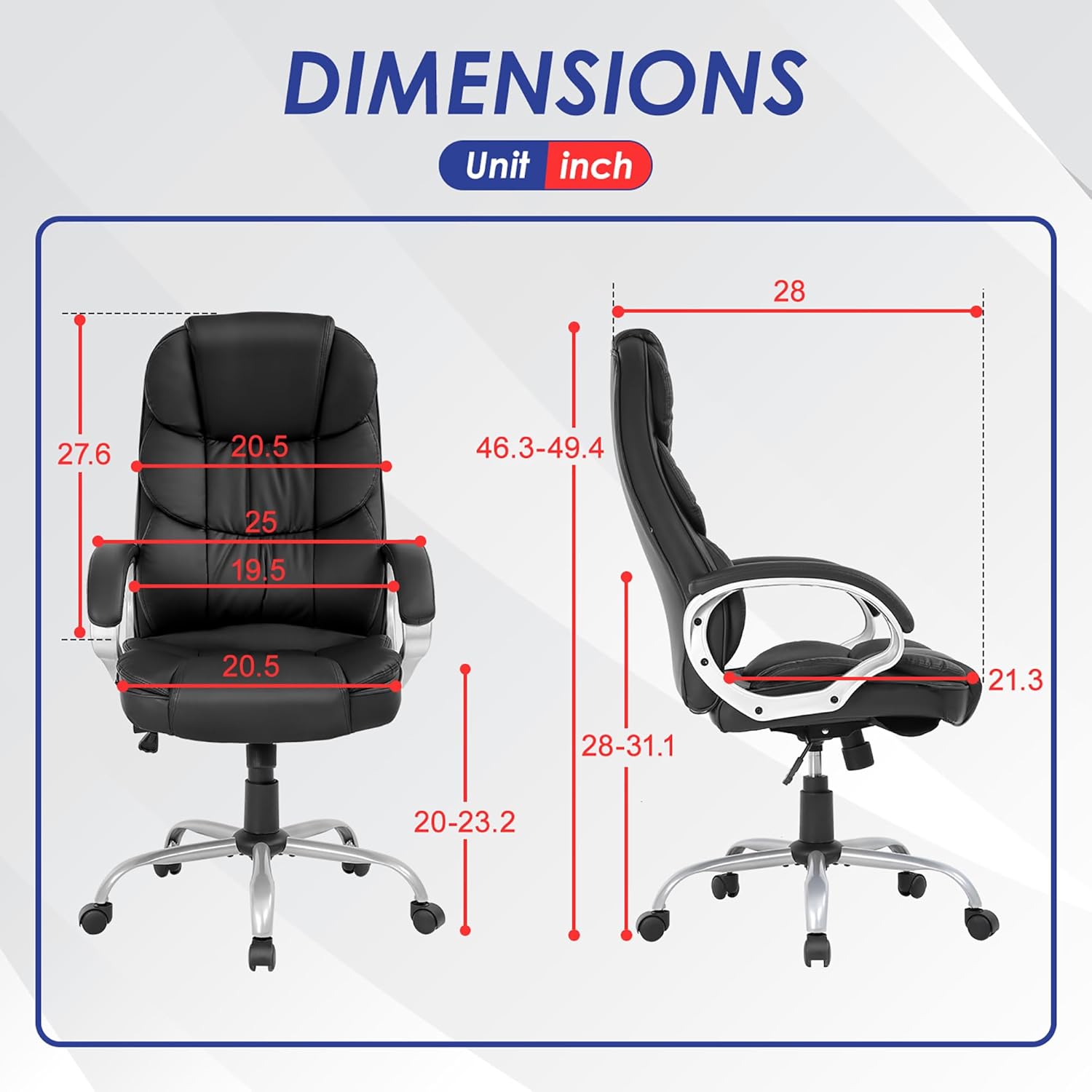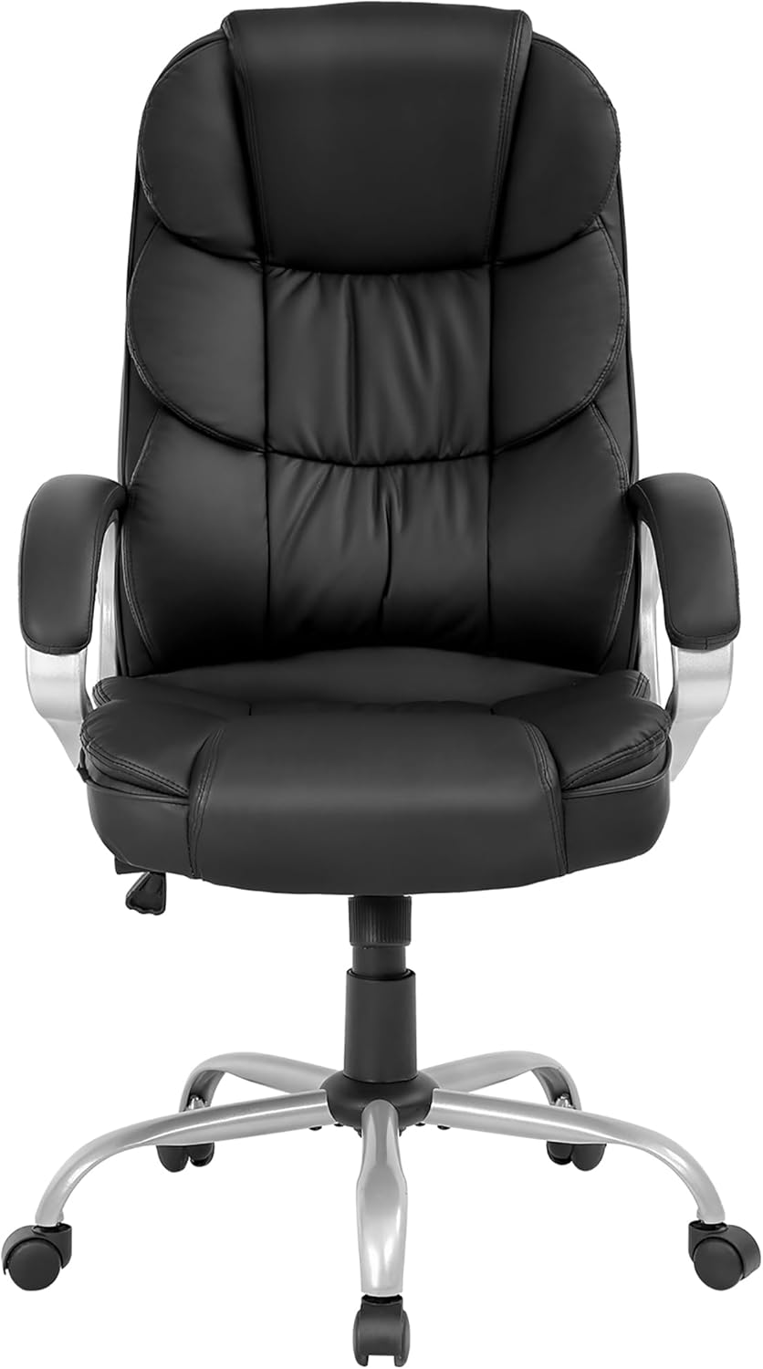 24/7 Shop at Home Ridge Modern Ergonomic Chair with Lumbar Support and High Back, PU Leather Office Furniture for Small Spaces, Bedroom, Study Room, Black