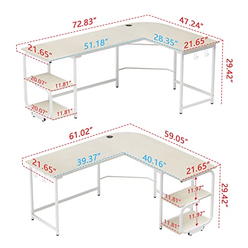 L Shaped Office Desk, Modern Reversible L Gaming Desk for Home Office, Spacious Desktop Corner Computer Desk, Teak