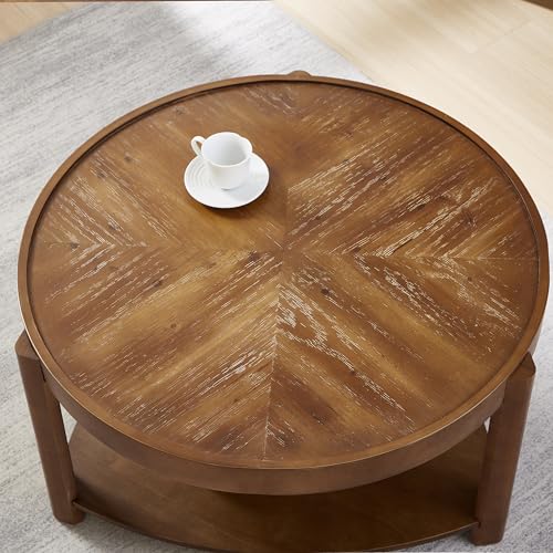 Round Rattan Coffee Table for Living Room, Natural Woven Rattan Round End Table for Apartment Living Room (Coffee Table Only)