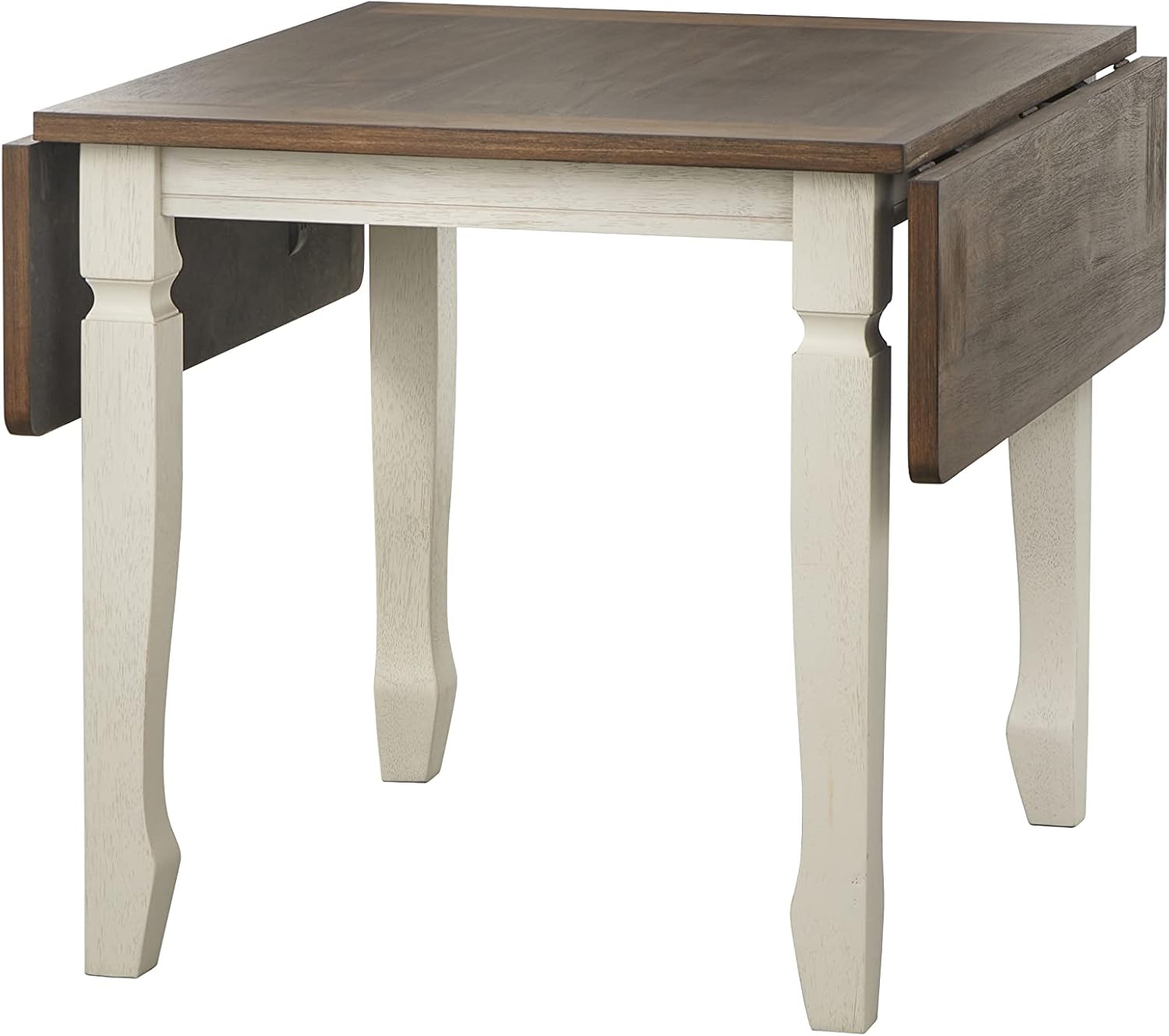 Macallister 3-Piece Drop Leaf, Tabletop Extends from 30 to 50 Inches Long, Modern Farmhouse Design, Dining Room Set Includes 1 Table and 2 Chairs, Walnut/Antique White