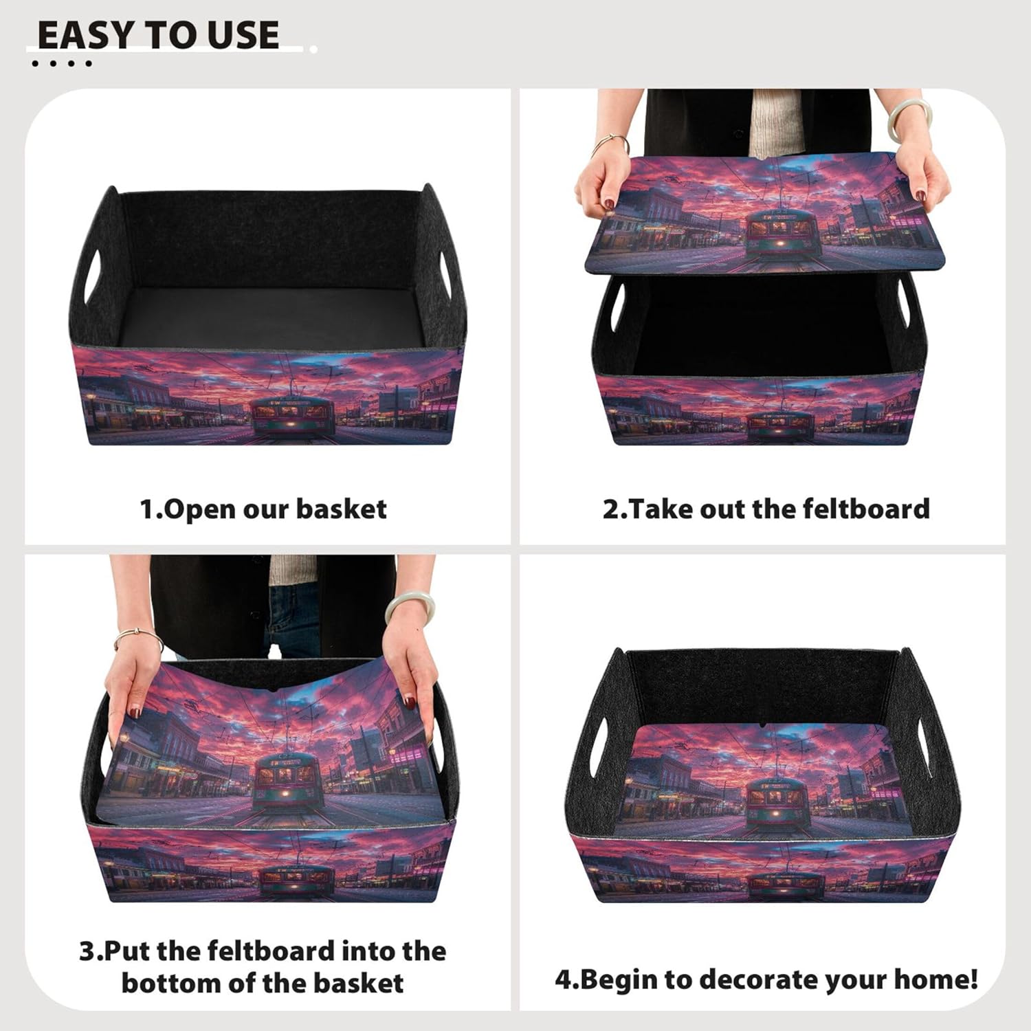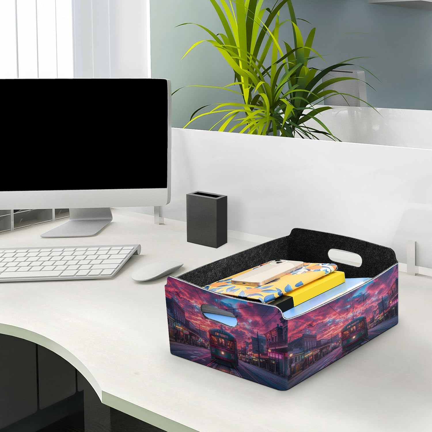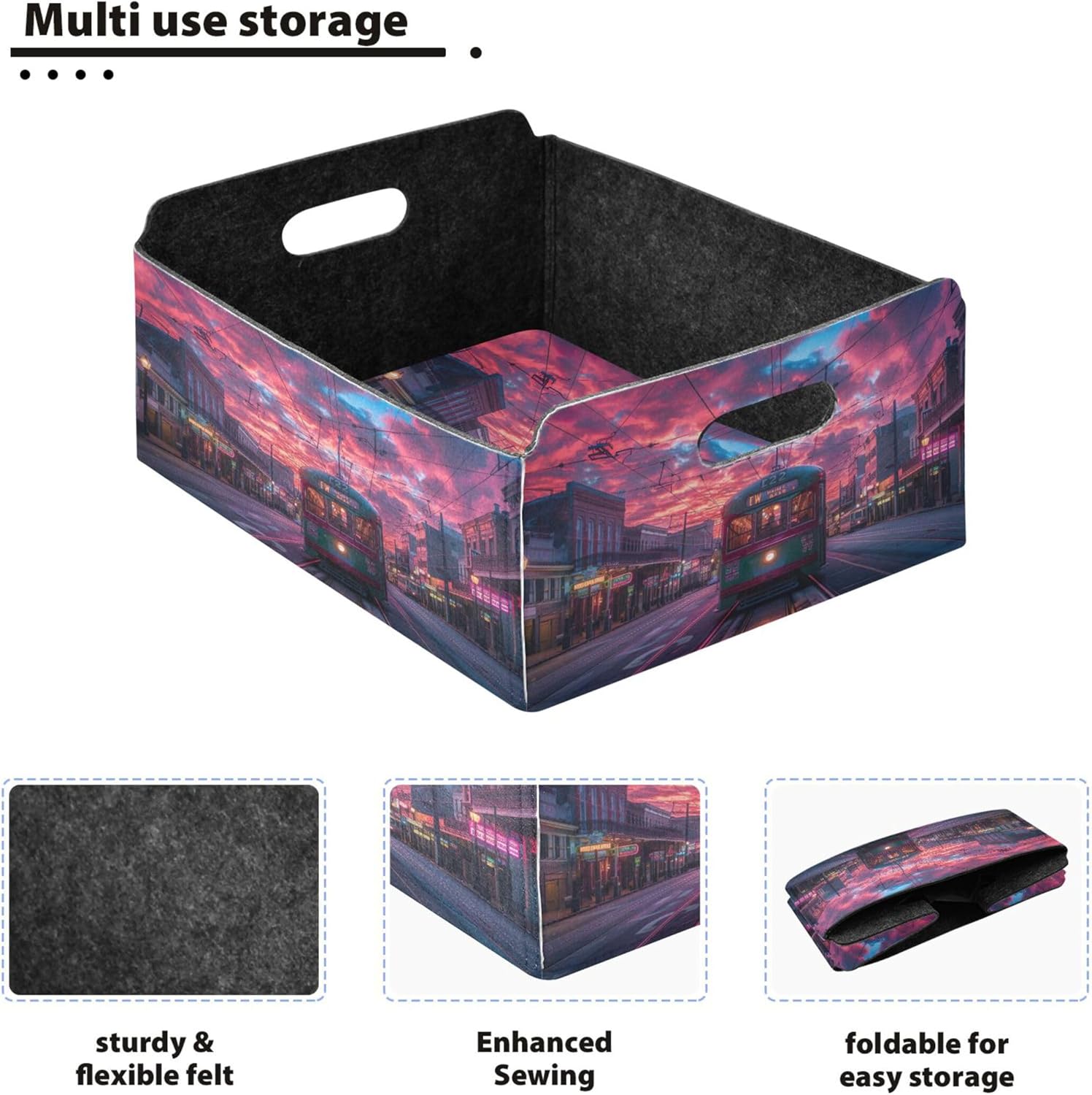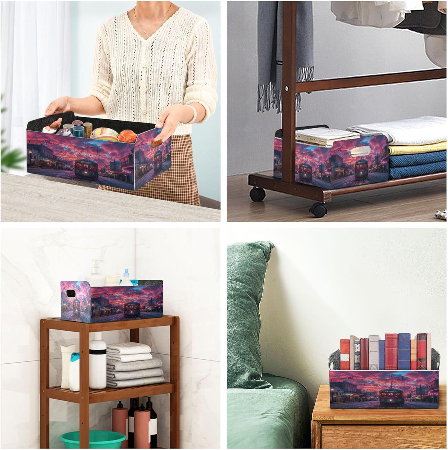 xigua Streetcar at Sunset Storage Bins with Handle Collapsible Storage Cube Home Decor Storage Baskets Organizer for Toys Books Shelves Closet Laundry Nursery