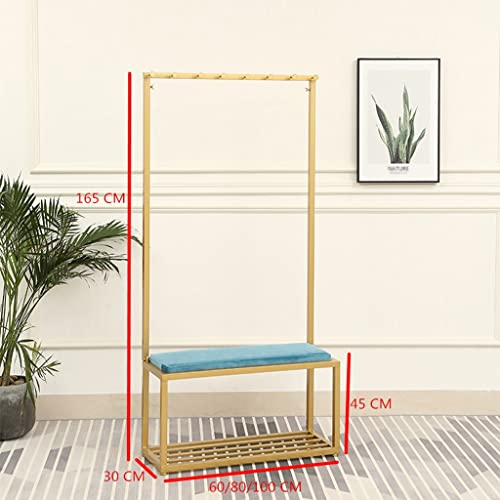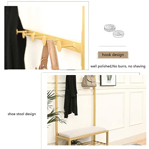 Coat Rack Entryway Hall Tree Heavy Duty Stand Coat Rack With Storage Bench Hooks Shoe Shelf Industrial Furniture With Stable Metal Frame Clothing Store Home Bedroom (Gold+grey 80x3