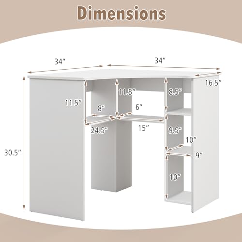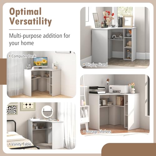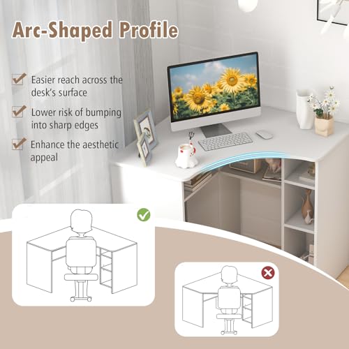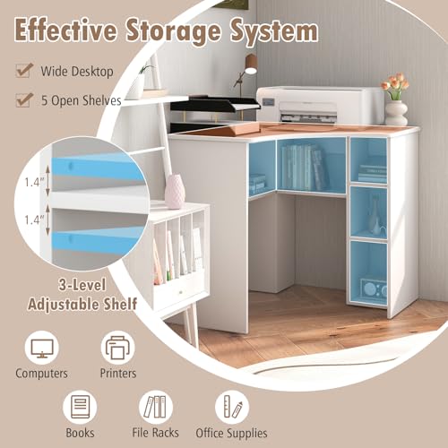 GOFLAME L-Shaped Computer Desk, Corner Study Writing Desk with Storage Shelves, Compact Computer Workstation with Adjustable Shelf for Home Office, Natural