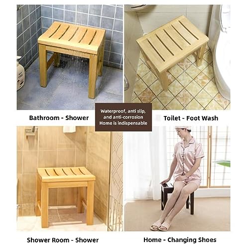 Solid Wood Bathroom Stool, Elderly Anti-Skid Wooden Stool, Foot Washing Stool, Suitable for Bathroom Bathing, Bathroom Foot Washing, and Changing Shoes at Home (Woody Natural)