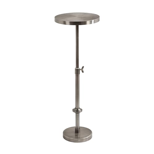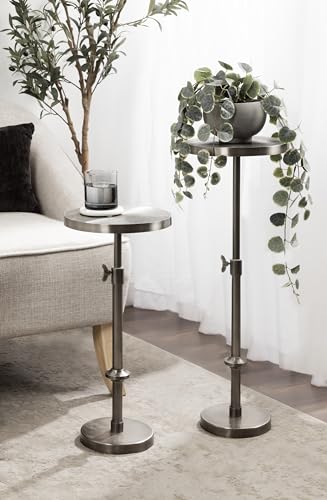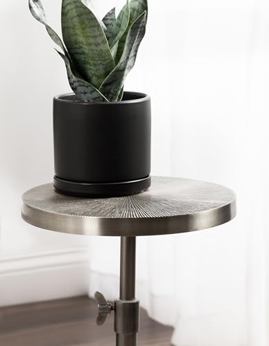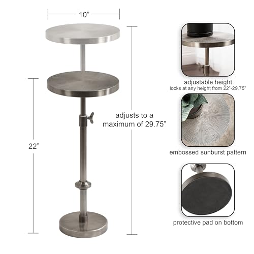 Kate and Laurel Engles Traditional Adjustable-Height Pedestal Drink Table, 10 x 10 x 30, Antique Silver, Vintage Round Indoor Metal Plant Stand with Embossed Sunburst Pattern