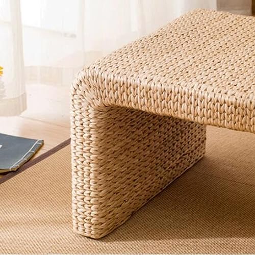 Solid Wood Straw Rattan Coffee Table Tatami Window Table Bedroom Small Dining Table Tea Ceremony Short Table Rectangular Small Table Balcony Floor Table (Size : 100cm)