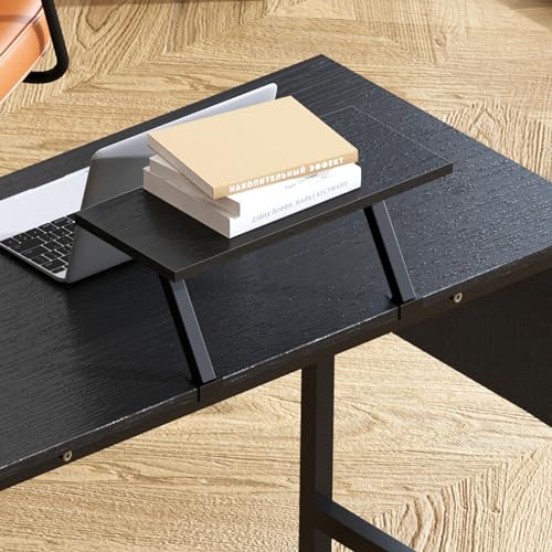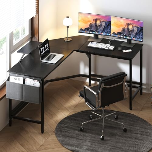 SogesHome Corner Computer Desk, Large L Desk for Home Office Multifunctional PC Gaming Table, Workstation with Side Pocket and Monitor Stand, Vintage Brown