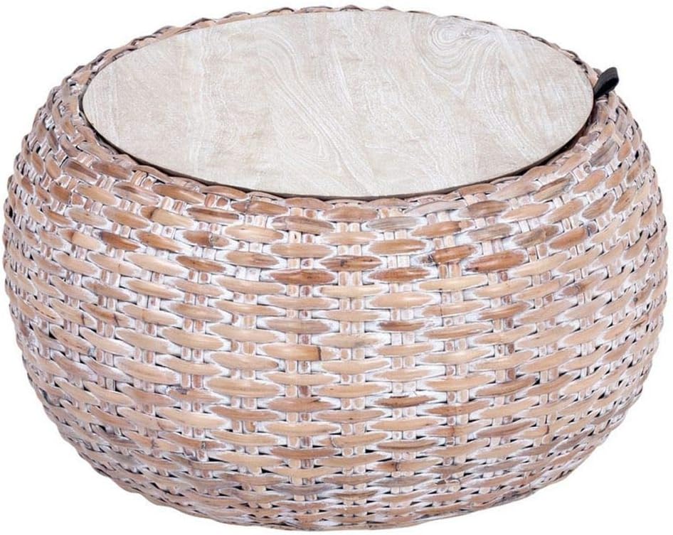 Creative Co-Op, Natural Round Bamboo Rattan Barrel Coffee Table