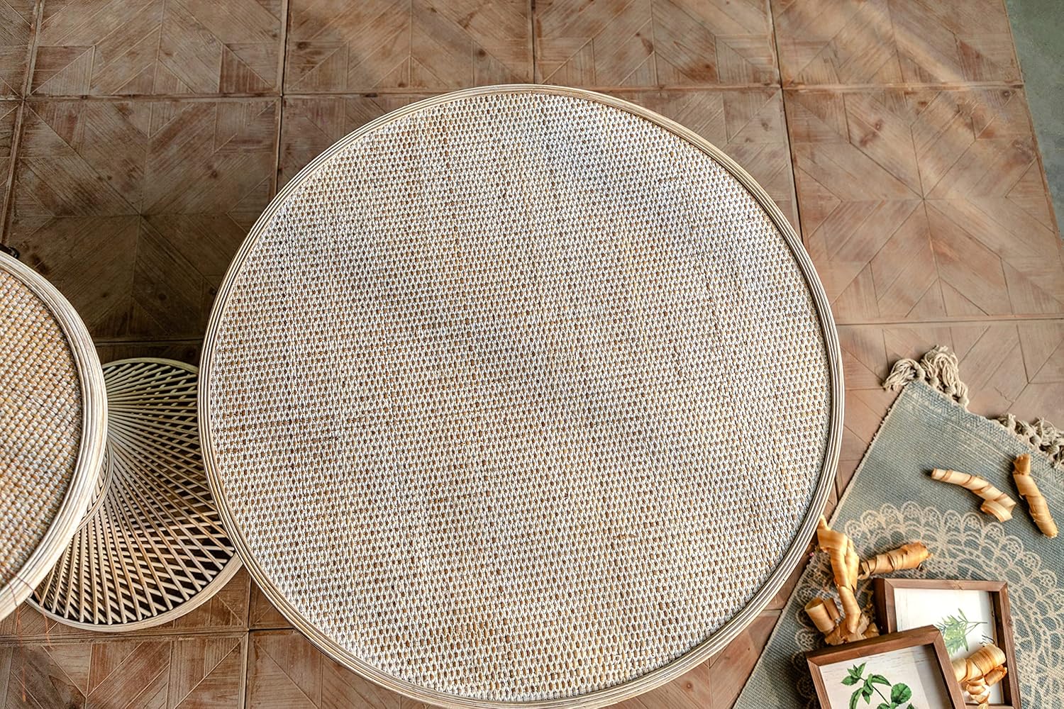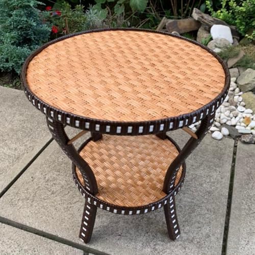 Round Rattan Coffee Table Living Room, Natural Durable Woven Rattan Round Coffee Table for Patio Indoor, 31.5" D x 16.34" H (Coffee Table Only)