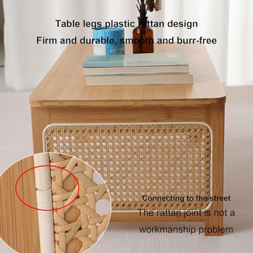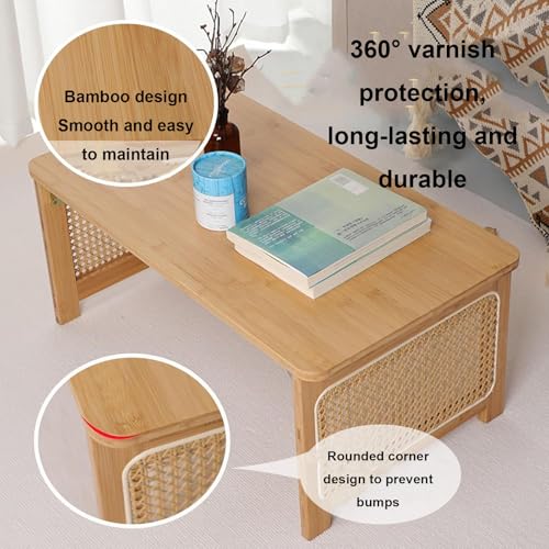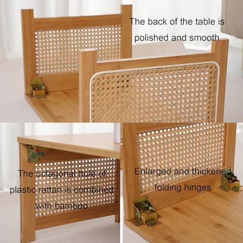 Wood,70 * 40 * 31cm, Japanese Rattan Coffee Table, Vintage Folding Portable Bamboo Bay Window Low Table, for Balcony, Tatami, Floor, Tea Room